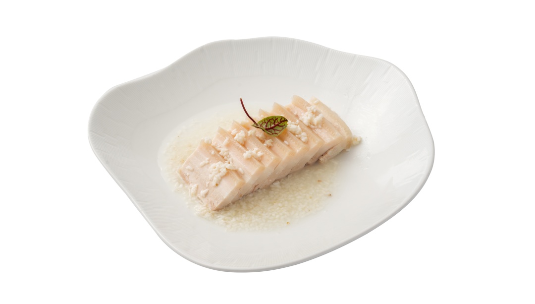 红烧划水选用青鱼尾部,以本帮传统“红烧”技法烹制。成品酱色红亮,鱼皮弹糯,鱼肉鲜嫩入味,口感香浓软滑。