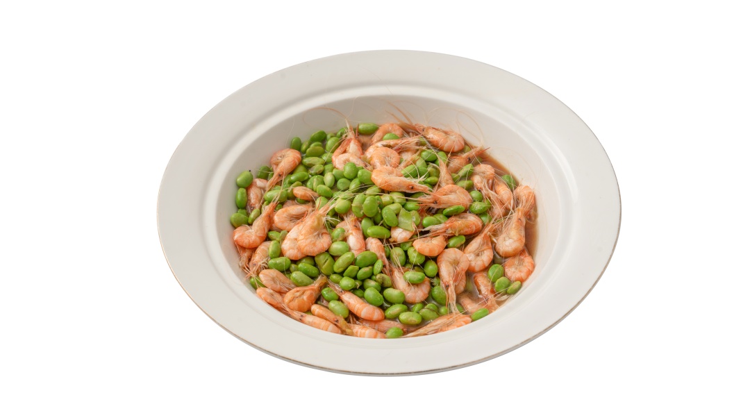 晶莹的白米虾与翠绿毛豆同炒,虾的鲜甜与豆的清香相互渗透,色泽清丽,口感丰富,完美保留时令食材的原汁原味。