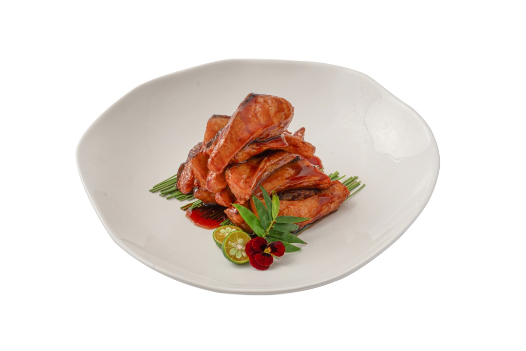 新鲜草鱼块炸至酥脆,旋即浸入咸甜酱汁。成品红亮诱人,入口先酥后嫩,咸鲜与甘甜交织,尽显“浓油赤酱”的海派魅力。