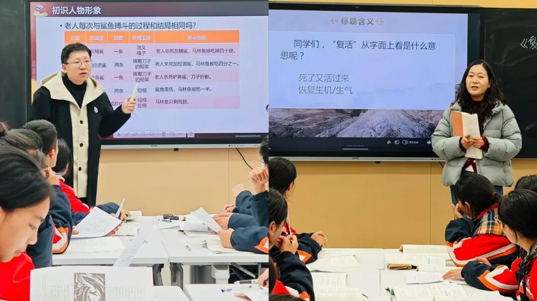 语文学科教学展示中,援青教师金文与徒弟然见卓玛分别执教《老人与海》与《复活》,围绕“小说教学的问题链设计”展开实践。金文从心理描写切入,通过递进式问题引导学生进行跨文化思考;然见卓玛以“谁在复活—如何复活—何为真正复活”为主线,引导学生深入解读文本内涵。两节课共同彰显了问题链教学在激发思维、推进文本纵深解读上的重要价值。
