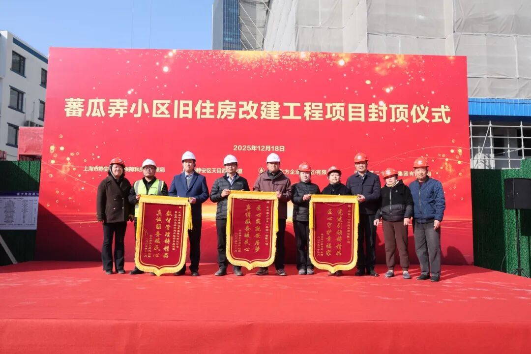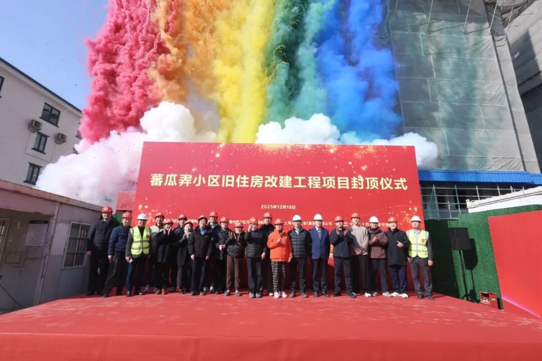 12月18日,在上海市静安区蕃瓜弄小区旧住房改建(拆除重建)项目封顶现场,专程赶来的居民李阿姨望着拔地而起的新楼,难掩激动。一旁的徐叔叔拿着手机拍摄封顶场景,忍不住感慨道:“从‘滚地龙’到工人新村,再到现在的电梯房,街道和居委会一路帮我们解难题,我们虽然搬出去了,但感觉从来就没离开过。”