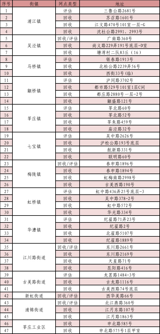 闵行区提供电动自行车老旧锂离子电池免费健康评估及回收服务,相关网点有: