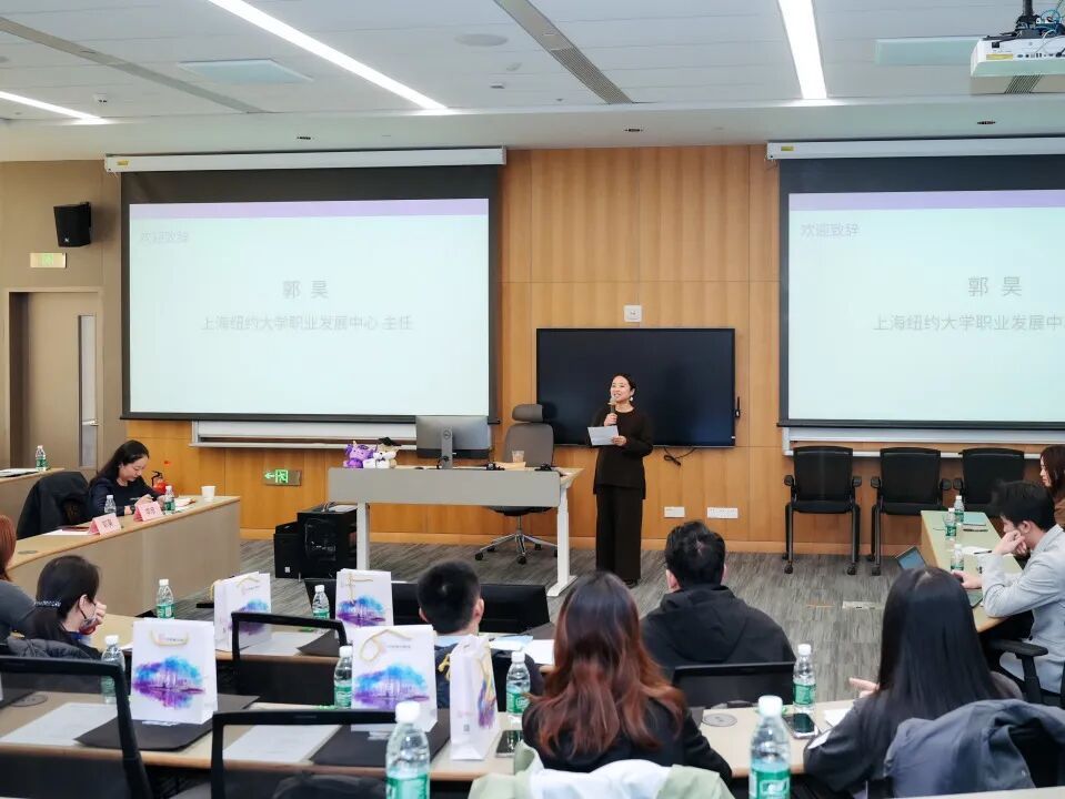 随后,上海纽约大学职业发展中心郭昊主任向企业介绍了学校依托纽约大学全球教育体系,打造国际化教育标杆的丰硕成果。并详细介绍了上纽大以培育创新型国际化人才为核心,持续为全球企业输送高质量人才的各方面情况。