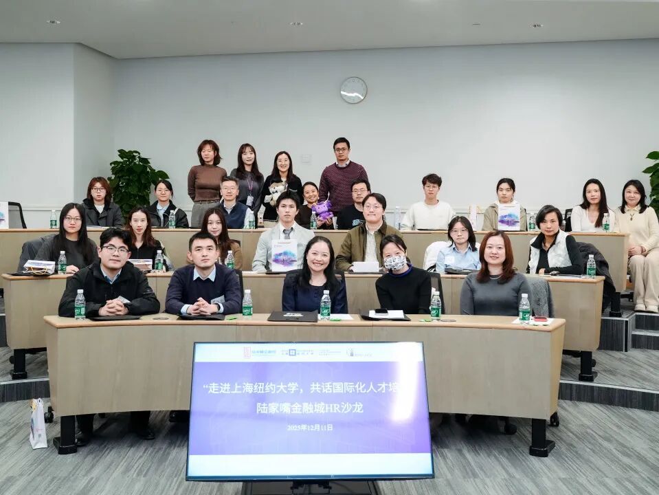 为贯彻浦东新区人才政策,强化政校企三方的联动纽带,助力浦东新区打造“青创第一城”,建设人才新高地,2025年12月11日下午,陆家嘴管理局人才金港联合上海纽约大学职业发展中心,举办陆家嘴金融城HR沙龙第119期。20位来自金融城的企业代表与上纽大师生共同探讨人才发展话题。