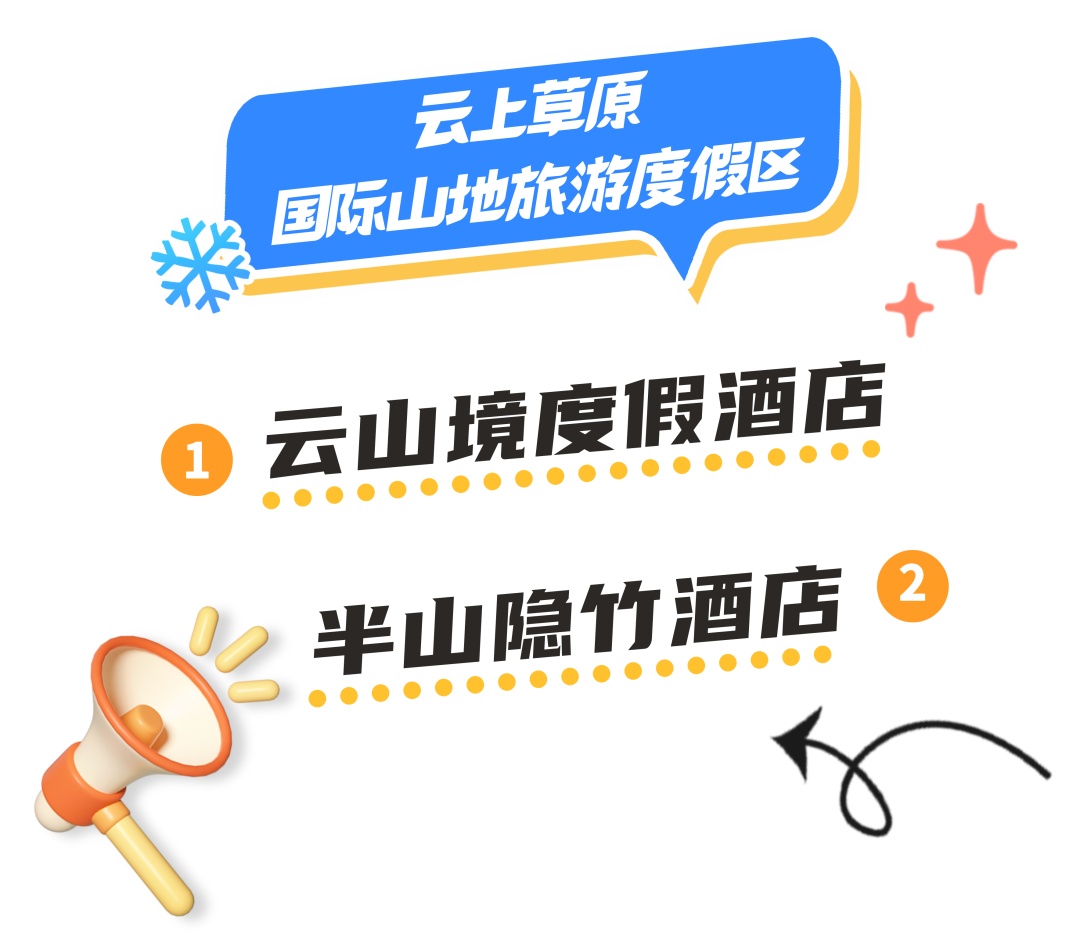 30万m²户外滑雪场——云上草原滑雪场现已正式开放!总长3.8公里雪道穿行“云端”,6条雪道含2条高级道,搭配赛事级装备,更有稀有粉雪赛道、星空夜滑专场打造浪漫奇遇,让你实现冰雪自由!