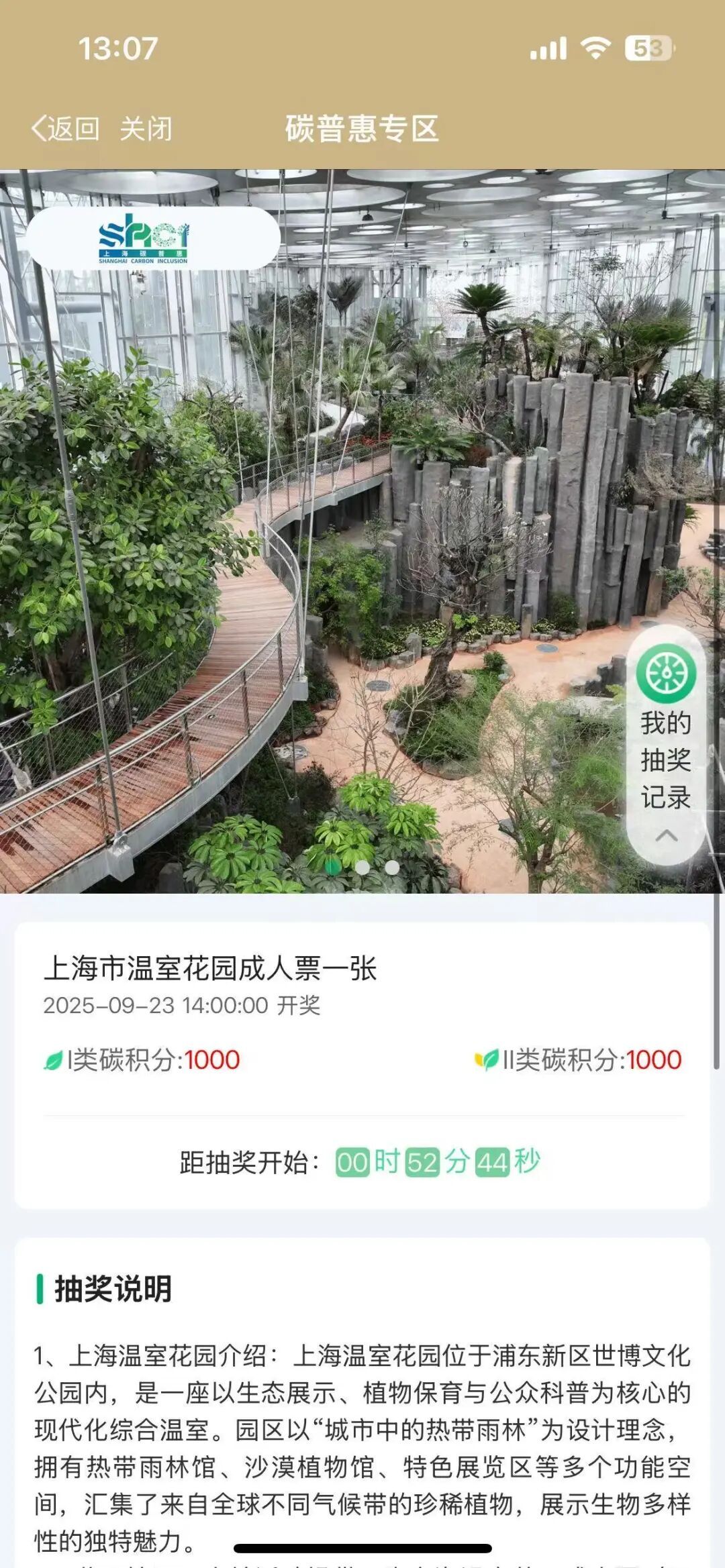 依托上海碳普惠机制,在上海蚂蚁森林生态绿色发展基金会支持下,“随申办”碳普惠专区于2025年9月至10月推出“绿碳领航,聚力同行”公益抽奖活动。参与上海碳普惠的市民通过“随申办”碳普惠专区积累个人在地面公交、轨道交通、互联网租赁自行车和纯电动乘用车等场景产生的减排量后可使用1000碳减排量参与上海市温室花园门票抽奖。门票提供方上海蚂蚁森林生态绿色发展基金会通过汇集市民兑换的减排量助力本次大会碳中和。此次活动通过激励公众低碳行为与大型活动减排目标相结合,有效推动了碳普惠机制的社会化应用,在提升公众参与感和获得感的同时,也为构建全民参与的绿色低碳生活体系提供了实践范例。