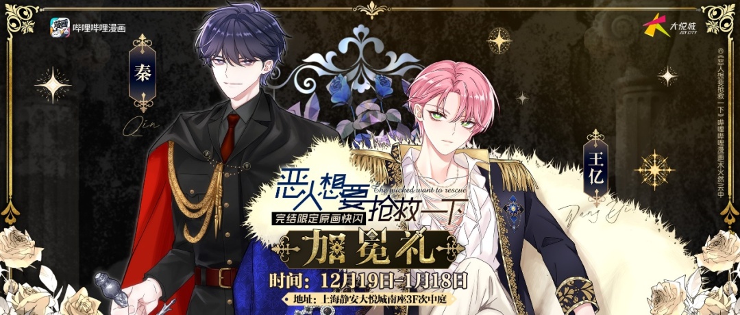 哔哩哔哩漫画《恶人想要抢救一下》完结限定原画快闪【加冕礼】19日正式开启;木火然&云中双作者首次合体签售,更带来超过百款新品周边发售,其中“完结限定礼盒”将有机会获得双作者亲笔签名,999套含“云中亲设玩偶”及“木火然编手写信”特别编号限量发售。