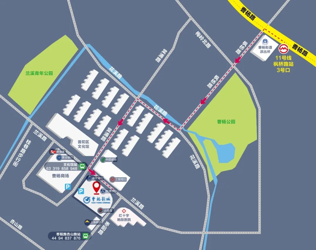 自驾:兰溪路曹杨商城入口处直行100米到达停车