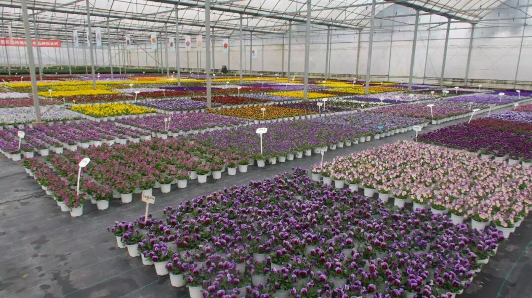 合作社董事长史纪金介绍:“角堇目前的产量较大,约有200多万盆;三色堇相比前几年有所减少。以前主要种三色堇,现在以角堇为主,产量在50万盆左右。”