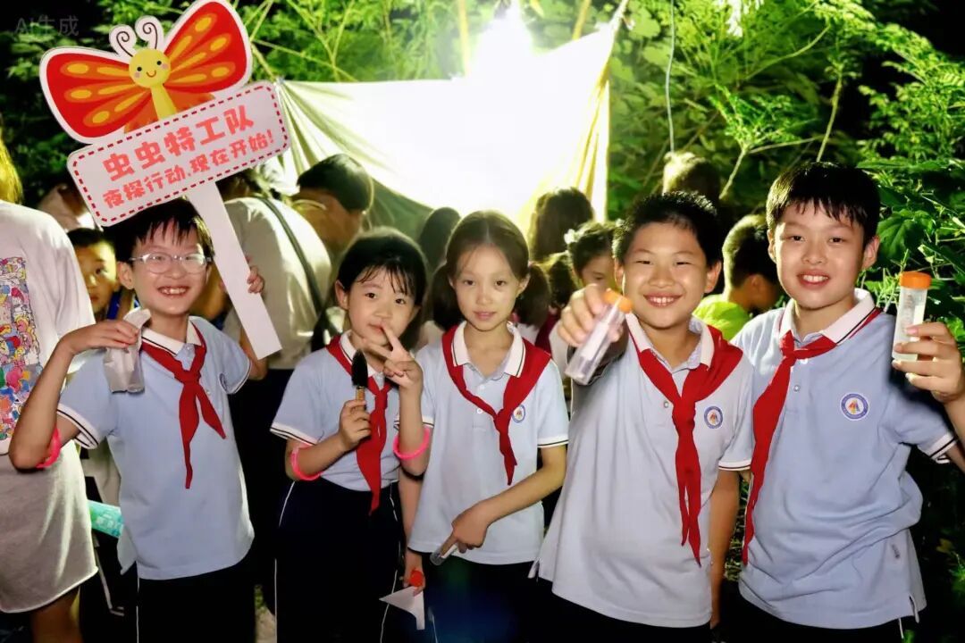 “快看,这只飞蛾的翅膀上有像眼睛一样的花纹!”“原来有这么多我们看不见的小生命!”此起彼伏的惊叹让夜晚满是活力。