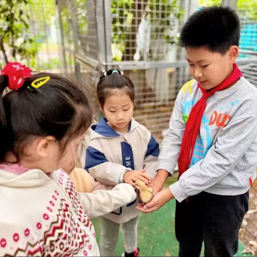 “小心点,别吓着小鸡!”“我发现公鸡的羽毛颜色会根据季节变化。”“小兔子刚出生,我们要怎么给它们更好的家?”课间,上海市浦东新区华林小学的“萌宠乐园”旁,几名戴着红领巾的孩子正围在鸡笼边,一边细心照料,一边小声交流着观察发现。