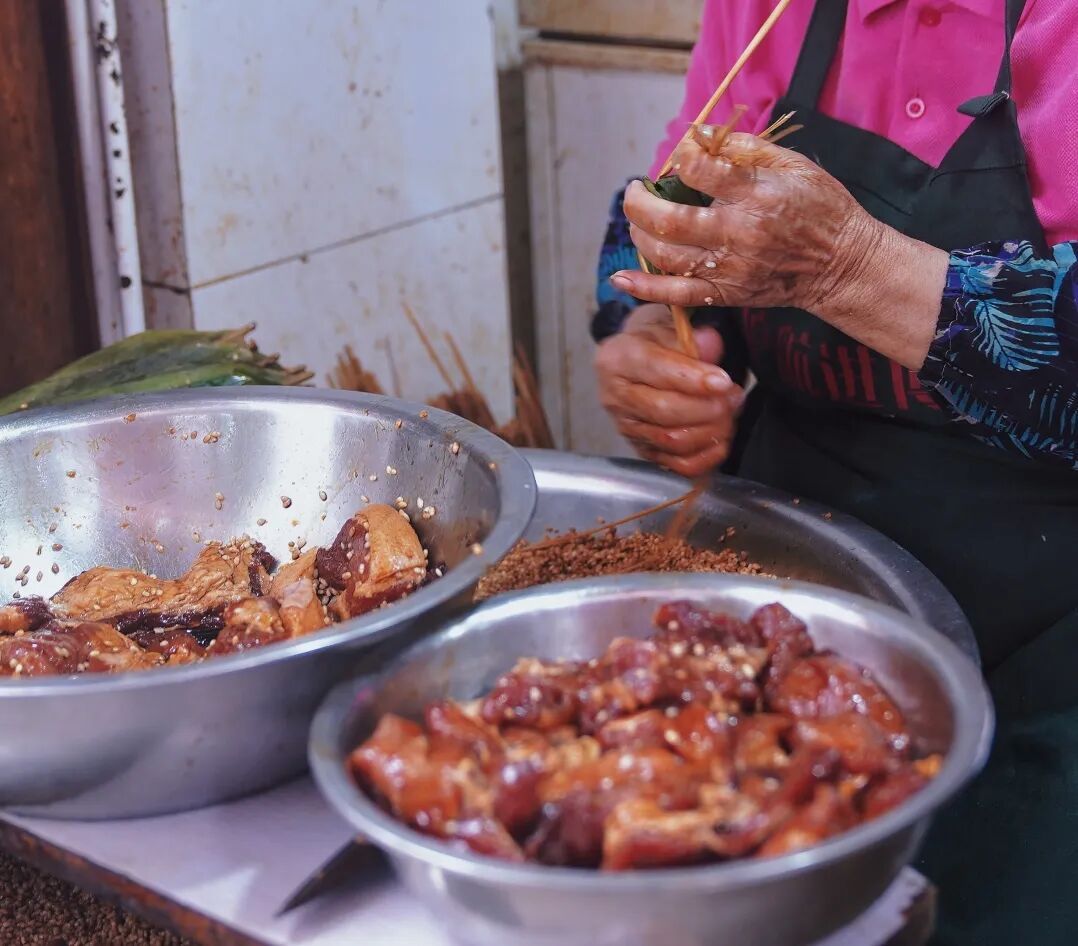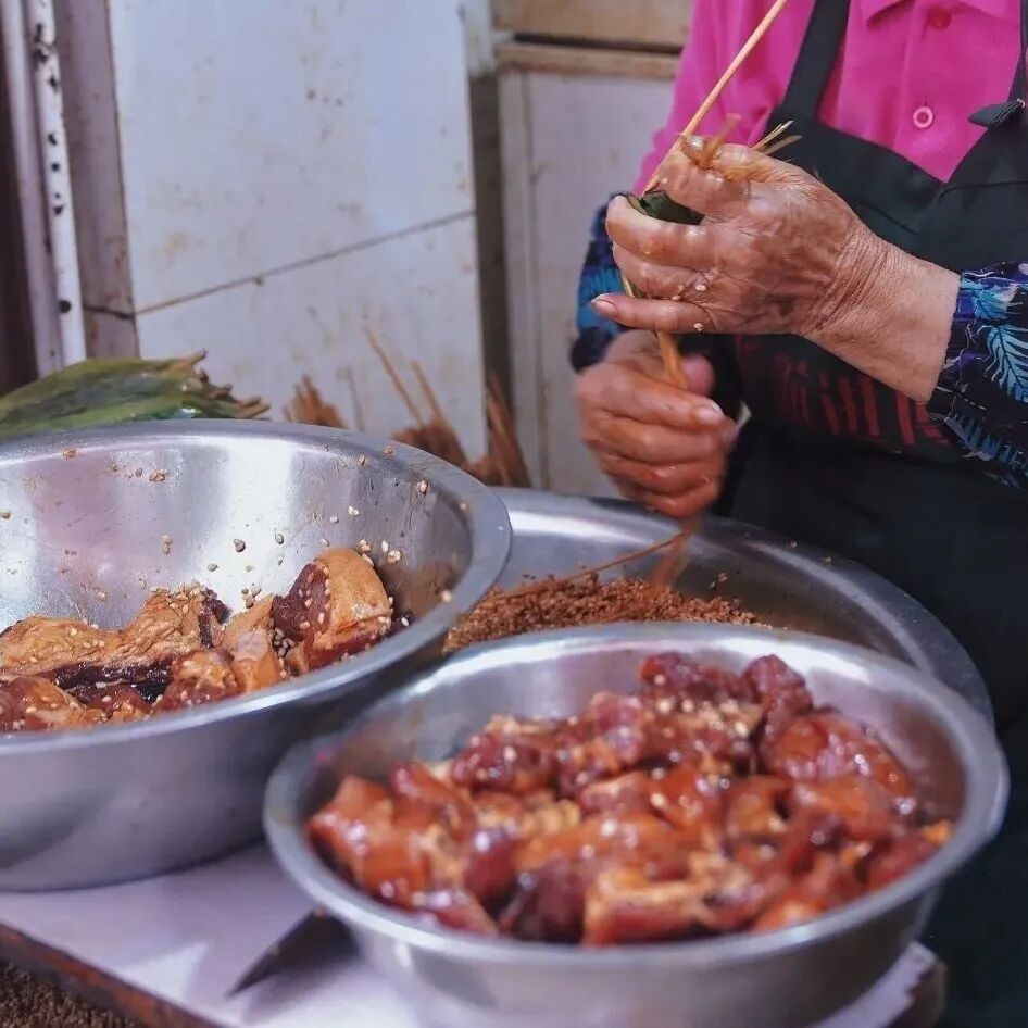 这里的“棕”,是沉淀的。水杉林伫立水岸,从树梢的焦糖色沉淀至根部的深赭,像封存了时光的信笺。而这沉稳的色调,也藏在碧绿的粽叶里,化为一块酱色糯米紧拥的、油润赤红的五花肉,一口下去,是秋冬最深沉的丰足。