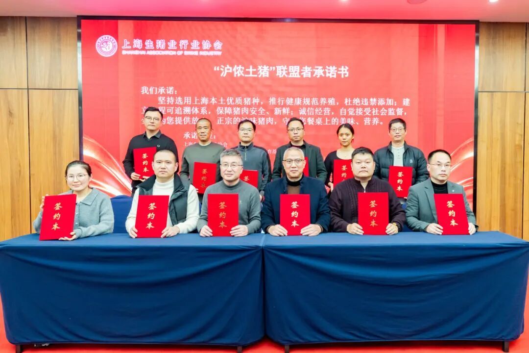 现场发布“沪侬土猪”集体品牌,并举行联盟签约仪式。“沪侬土猪”集体品牌由上海生猪业行业协会联合上海爱森食品有限公司、上海五丰上食食品有限公司、上海松林农业发展有限公司、上海沙乌头农业科技有限公司、上海浦汇良种繁育科技有限公司5家企业发起,汇聚梅山猪、枫泾猪、沙乌头猪、浦东白猪、上海白猪五大本土优质猪种。“沪侬土猪”品牌将联合养殖企业与科研机构,建立从种源保护、生态养殖、品质追溯到品牌营销的全产业链体系,确保每一份“沪侬土猪”产品都能代表其品种的纯正风味与卓越品质。
