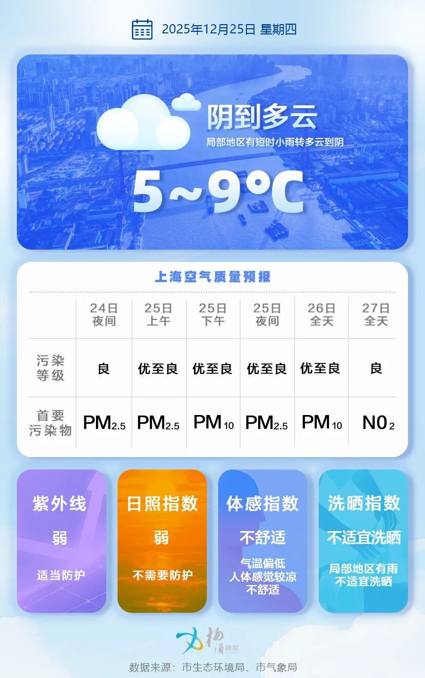 今天受补充冷空气影响,多云到晴为主,气温继续下降。风力也较昨日进一步增大,偏北风4-5级阵风6级,沿江沿海地区5级阵风6-7级。预计早间最低气温市区在5℃左右,郊区更低,白天最高气温和昨日相仿,在9℃附近。相对湿度90%~45%。风寒效应明显,体感较冷。