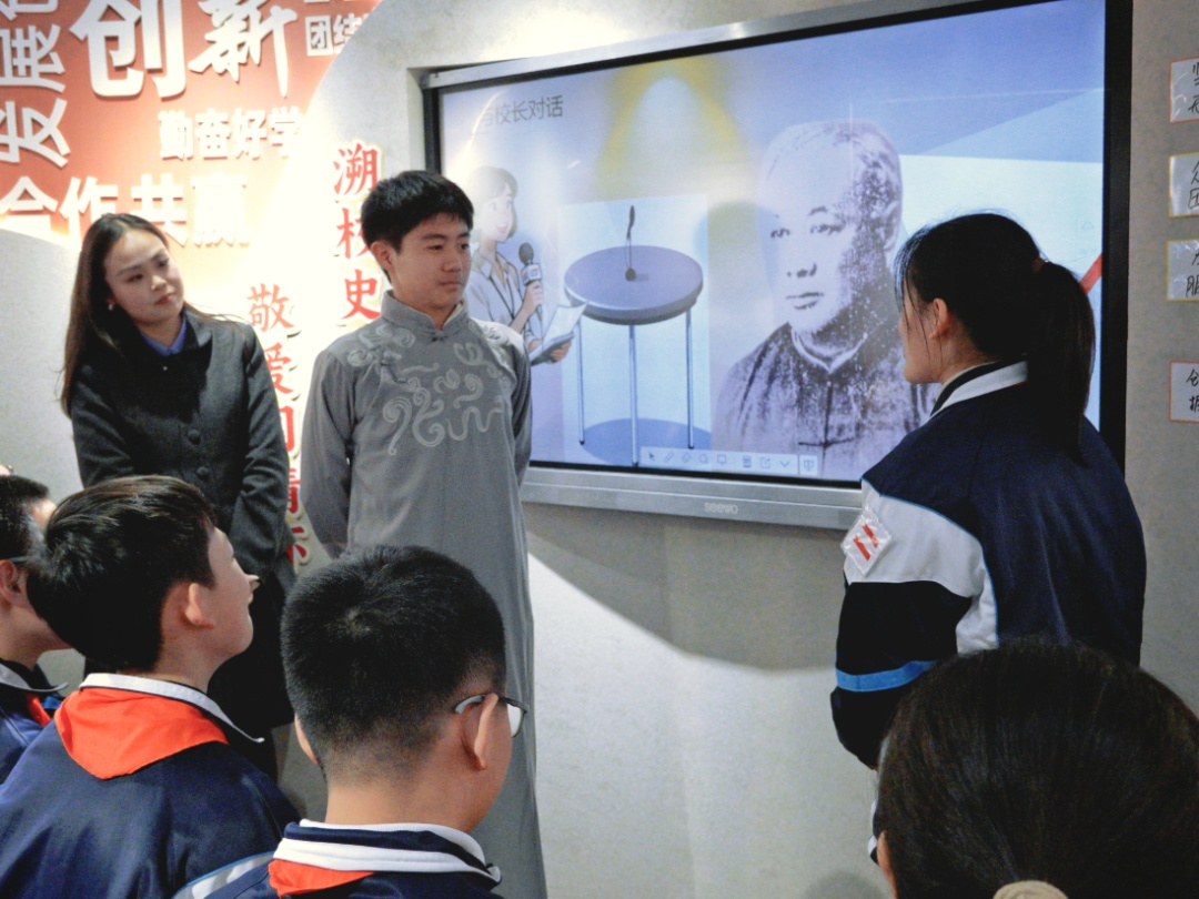 《溯校史文脉》主题班会直接扎根校史馆,学生们在厚重的校史档案、珍贵的办学实物中,通过“时空对话”的创意设计,重温凌铭之校长变卖祖产办学、母亲“家产虽去,精神永存”的支持,深刻领会“德犹轴也,所以运轮宇宙”的育人理念与“庄敬立身、朴实行事”的品德准则,让红色基因与教育初心在沉浸式体验中自然流淌。