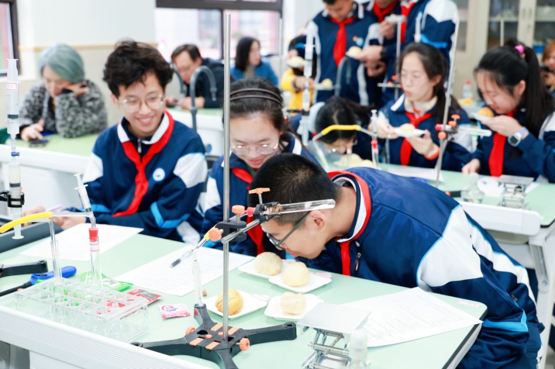 在这里,跨学科融合不再是纸上谈兵,而是看得见、摸得着的教学实践:化学与生物协同的《馒头的奇妙之旅》,让学子在发酵实验中串联化学反应原理与微生物知识,搭建跨学科思维模型;化学与地理联袂的《“碳”索地球》,引导学生从微观反应与宏观分布双重视角探寻碳中和方案。