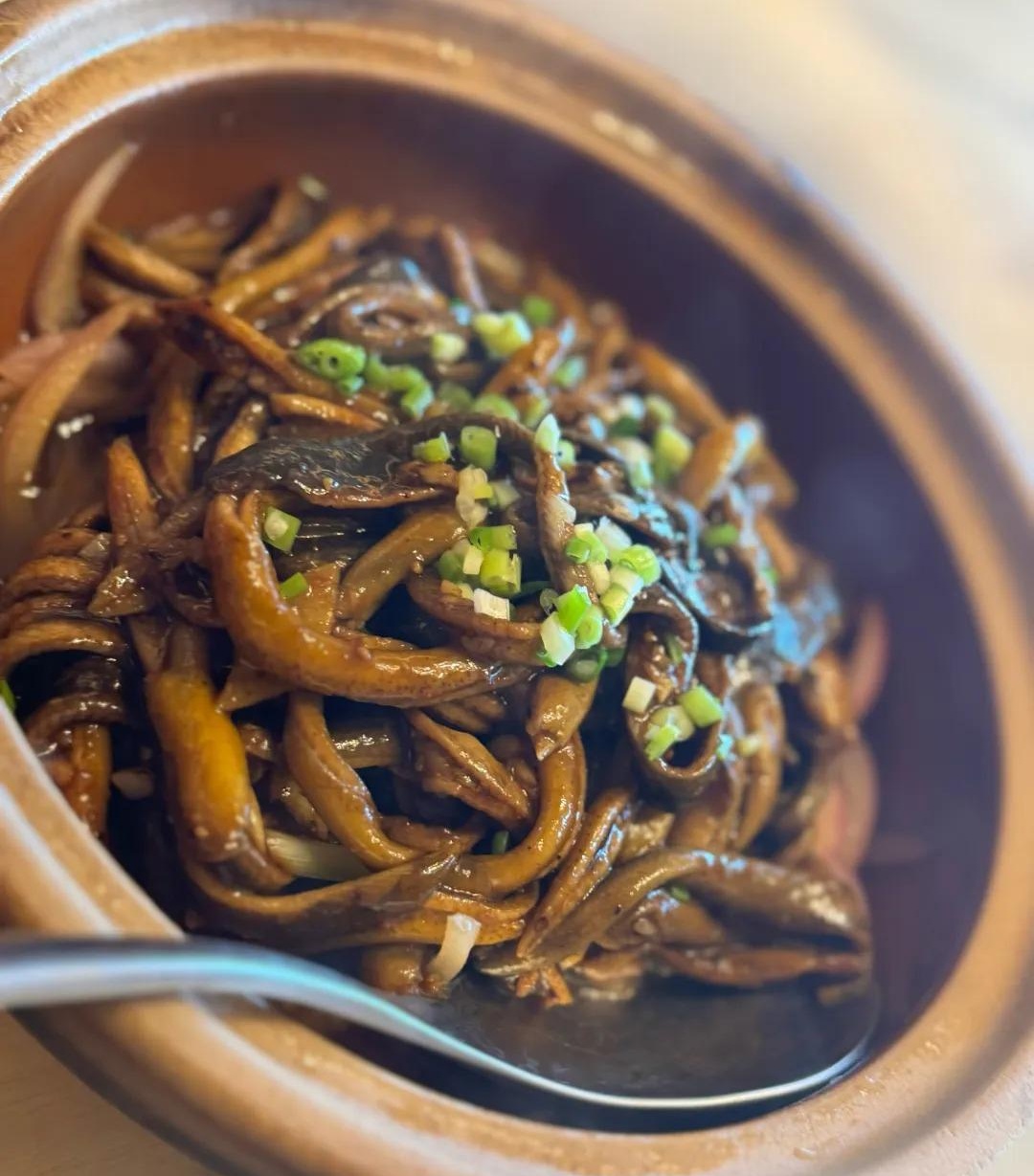 必点菜品:美林一绝牛蛙、脆皮雪花牛肉、台州沙蒜豆面、花生绵绵冰