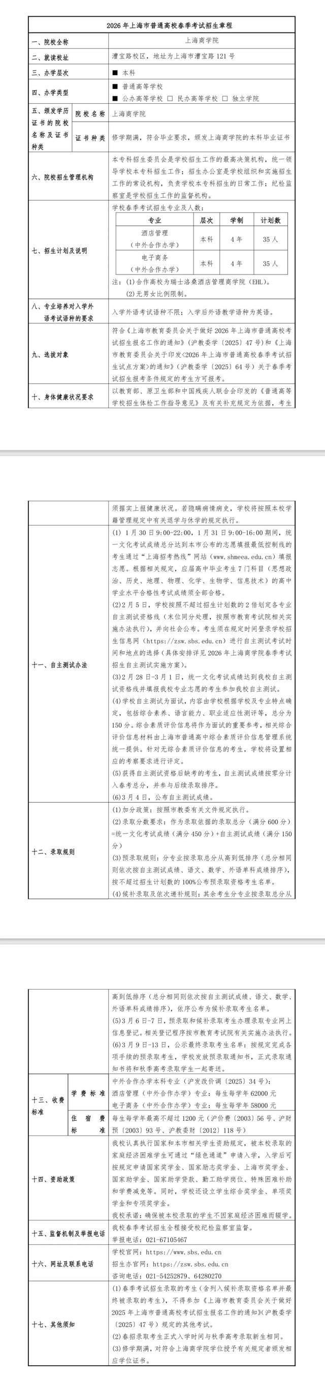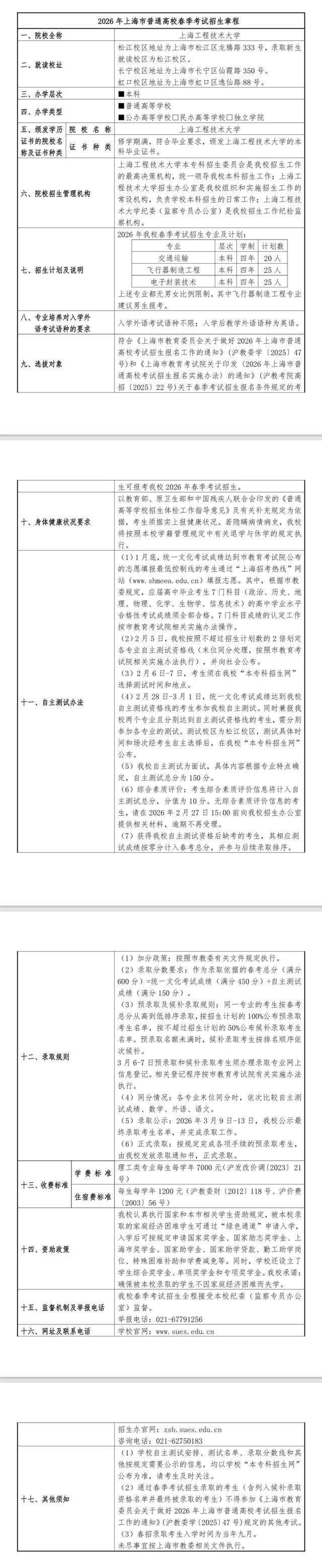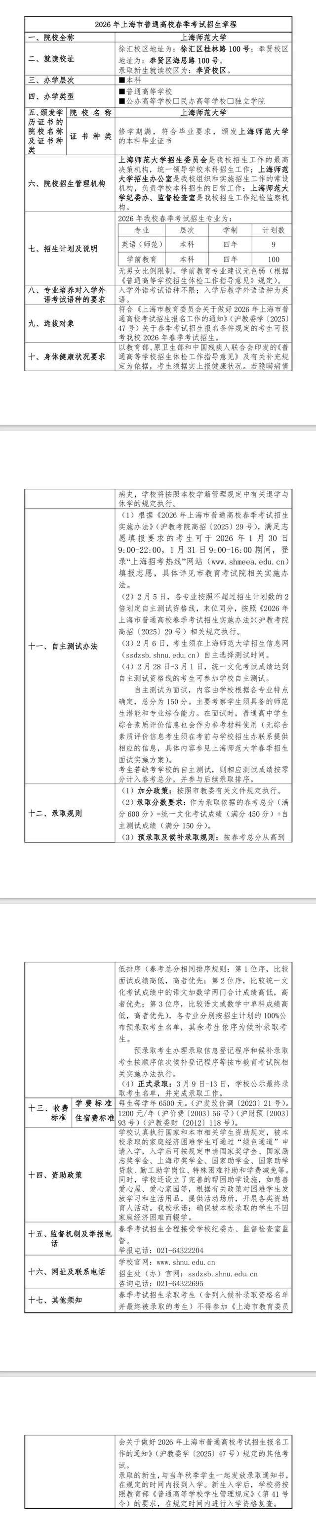 市教委公布2026年上海市普通高校春季考试招生(以下简称“春考”)26所试点院校的招生章程。快来查看心仪院校的招生情况吧!