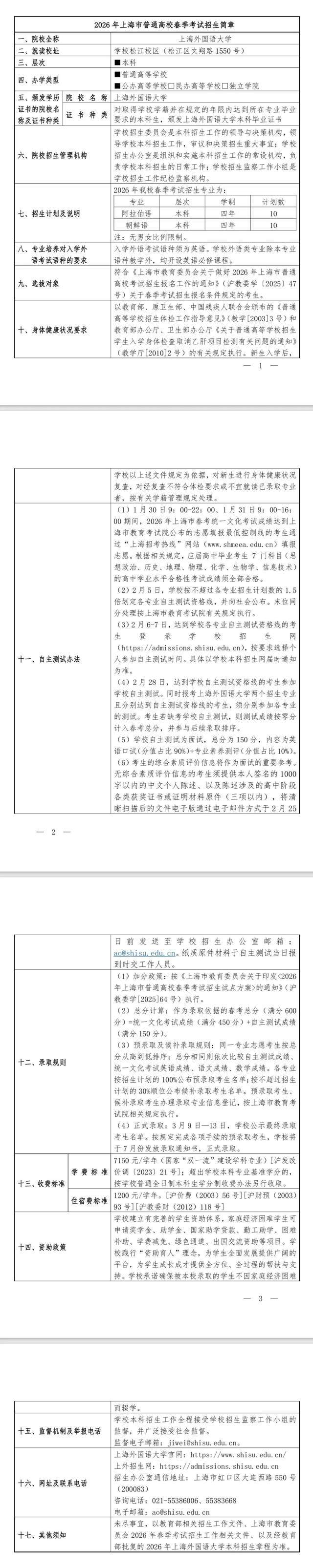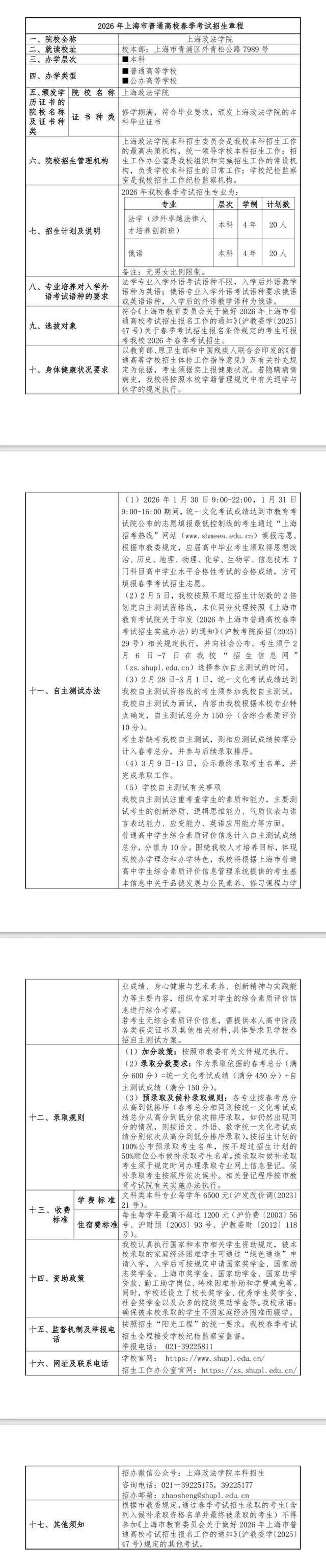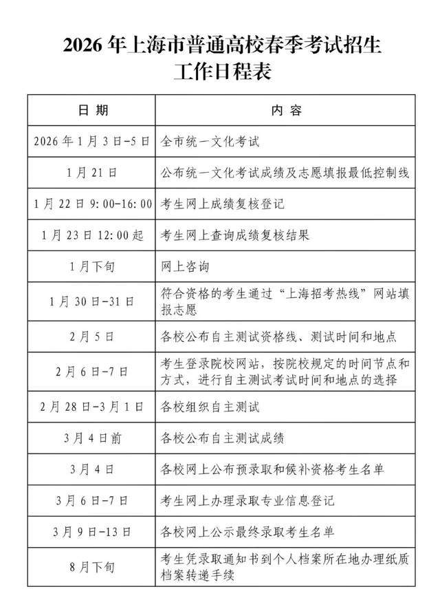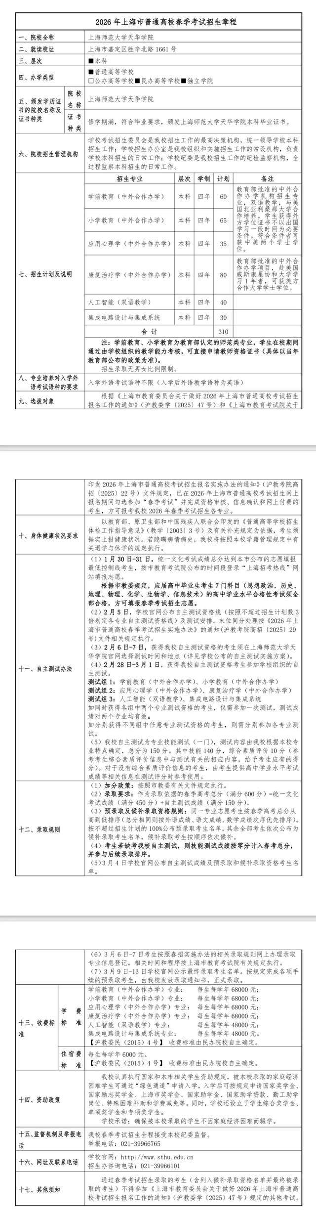 市教委公布2026年上海市普通高校春季考试招生(以下简称“春考”)26所试点院校的招生章程。快来查看心仪院校的招生情况吧!