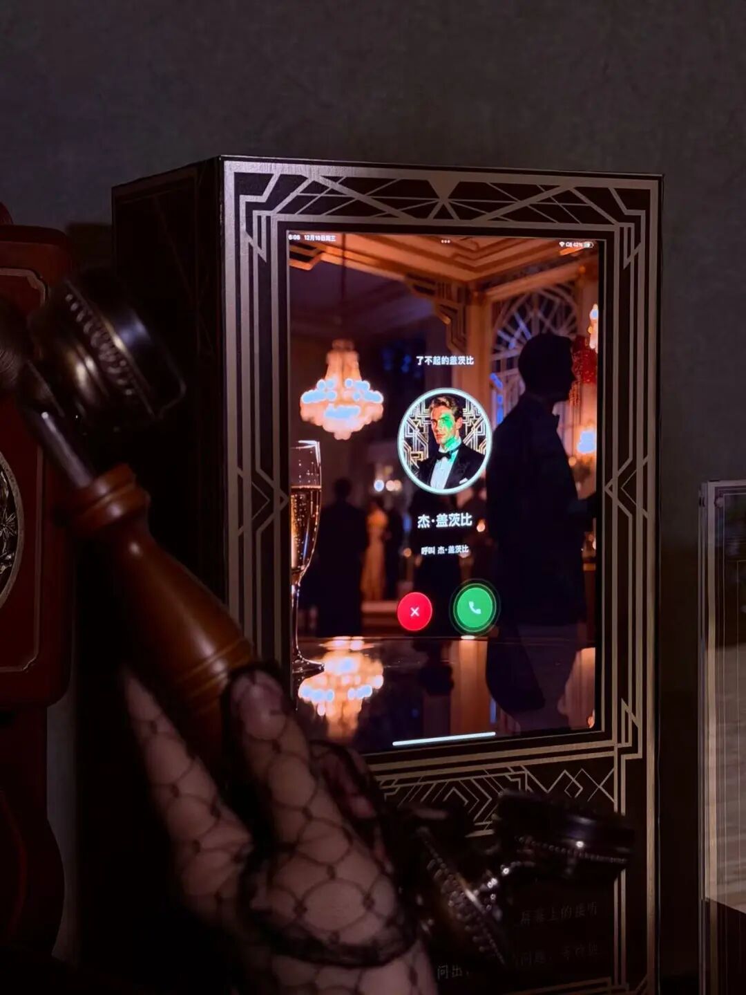 入座拨号:步入Art Deco复古电话亭,拿起听筒,点击屏幕绿色按钮,拨通“盖茨比私人专线”。
