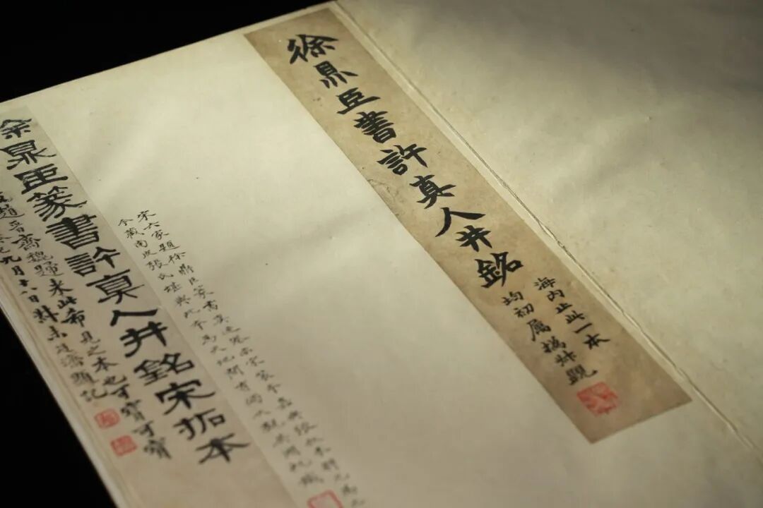 这期为大家介绍本次展览的重磅碑帖类展品《许真人井铭》,这也是潘祖荫旧藏的一本宋拓孤本,经赵魏、张廷济、鲍少筠、沈树镛等大家递藏,册中题跋、藏印累累。