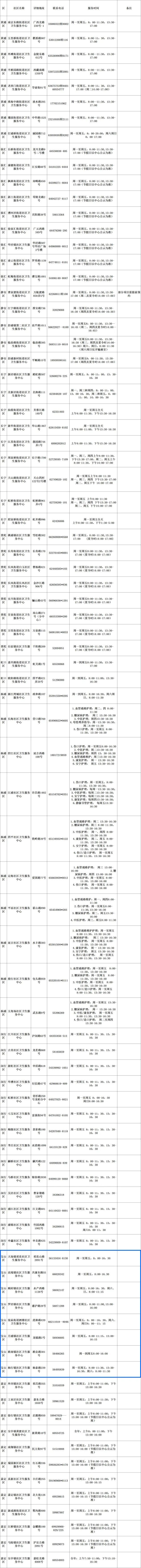 市卫健委介绍,近年来,本市着力推进社区卫生服务诊疗能力提升,现已建成64家社区标准化门诊手术室、158家社区护理中心、155家社区康复中心、233家中医药特色巡诊站点,能为居民开展清创缝合、拔甲、浅表肿物切除等门诊小手术,提供PICC、伤口、造口等专科护理,以及肢体康复、卒中康复和盆底康复、中医药特色巡诊等服务。现将有关诊疗服务信息公布如下↓ (上下滑动查看图片) (上下滑动查看图片) (上下滑动查看图片) (上下滑动查看图片)