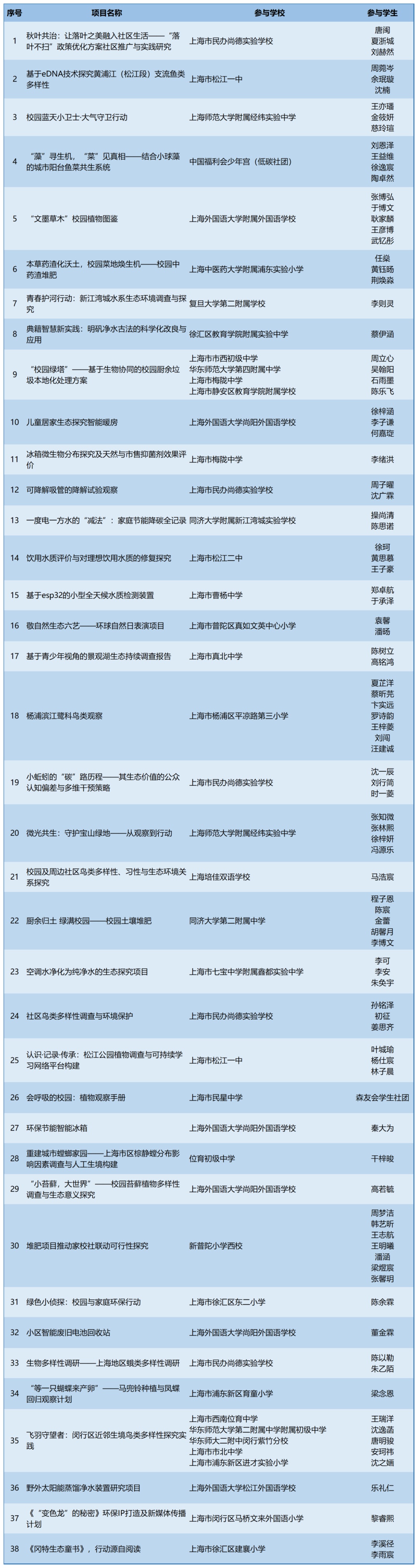 “美丽上海,青绿未来”——2025年上海市中小学生生态环境探究项目资助活动入选项目名单