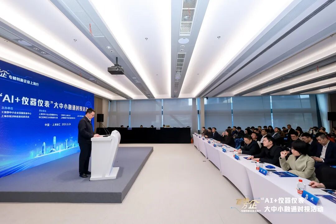 12月26日下午,“百场万企”全国专精特新企业上海行“AI+仪器仪表”大中小融通对接活动在徐汇区西岸国际会展中心举办。本次活动由工业和信息化部中小企业发展促进中心、上海市经济和信息化委员会主办,徐汇区新型工业化推进办公室等单位承办。工信部中小企业发展促进中心副主任李妍、上海市经济信息化委副主任潘焱、徐汇区副区长魏兰、上海国投副总裁许业荣等,以及来自全国AI、仪器仪表领域30余家企业代表出席活动。