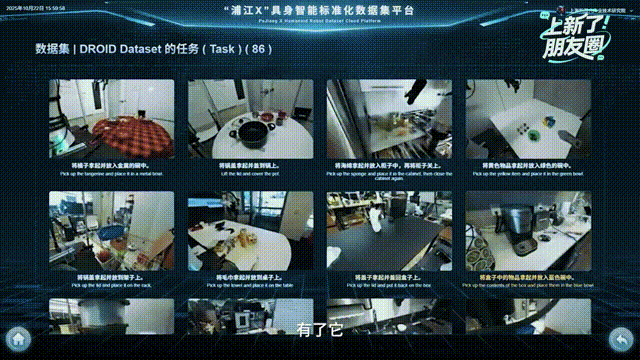 “可以说,这里专攻最聪明的机器人训练。”上研院副院长周梅杰介绍,“浦江X”具身智能标准化数据集平台(穹顶DOME)是由上研院联合复旦、交大等19家产学研机构共同开发的国内首个具身智能标准化数据集平台。