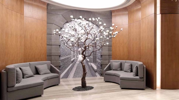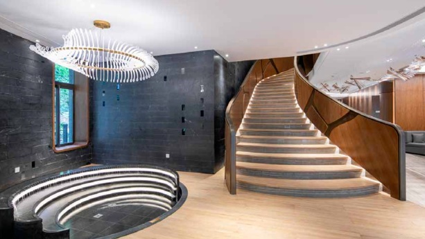 公寓大堂以飘逸造型的楼梯营造雕塑感艺术氛围,光影走廊融入海派风情,房间以木质与梧桐色调为灵感,搭配简洁墙纸及经典家具,打造宁静舒心的居住体验。