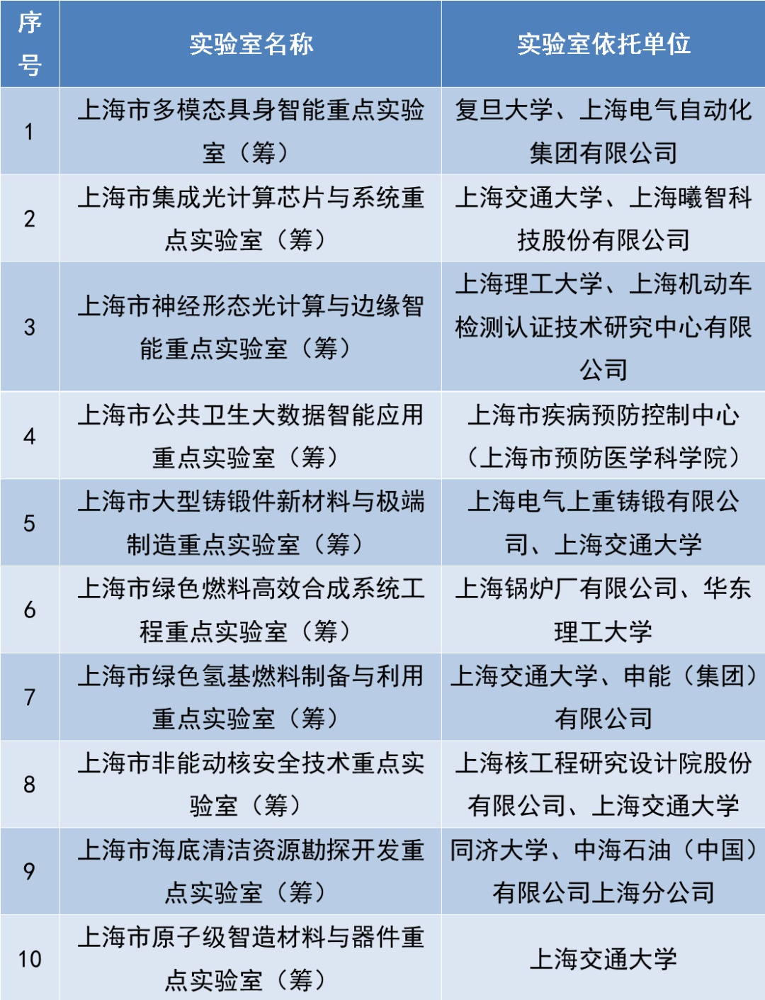 根据上海市2025年度重点实验室建设计划,协同各推荐部门评审论证,现启动“上海市多模态具身智能重点实验室”等10家重点实验室筹建立项(见附件)。