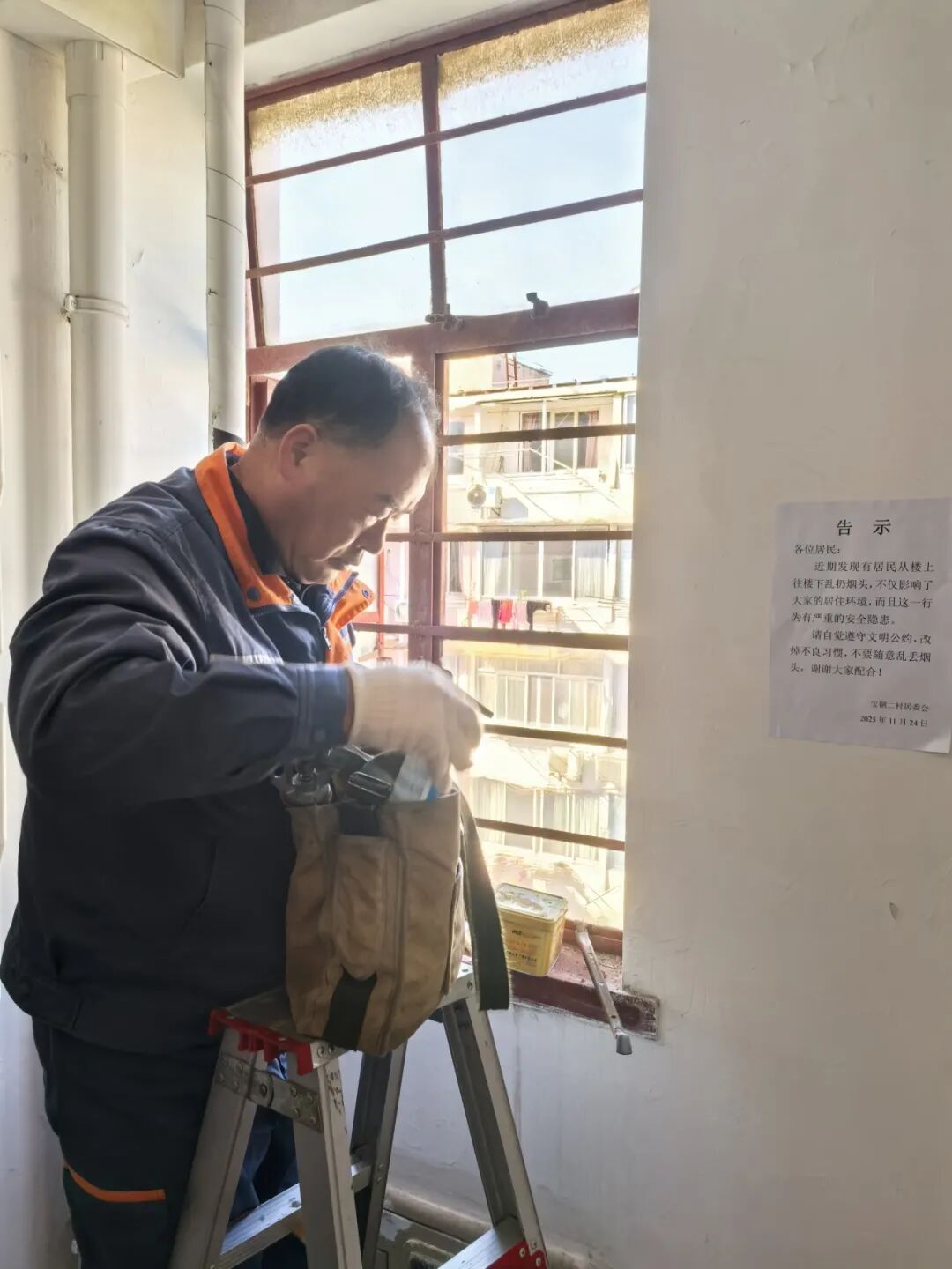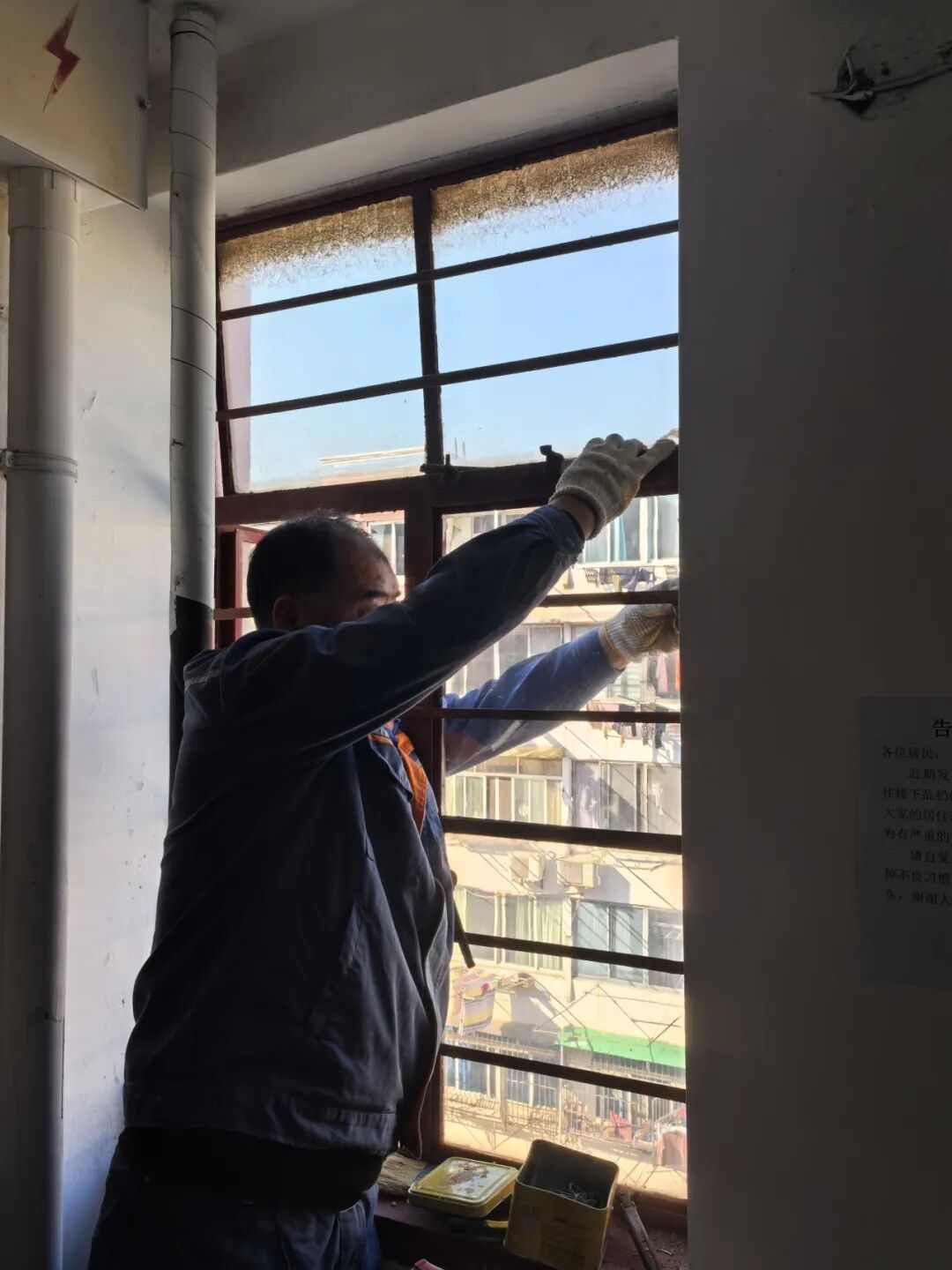 当天下午,物业维修人员对脱落的公窗进行更换安装。为杜绝类似隐患,“三驾马车”商议决定,对小区所有楼道的公共窗户开展全面排查,逐楼逐窗检查,登记窗户松动、老化、破损等情况,安排上报维修,为居民营造安全的居住环境。