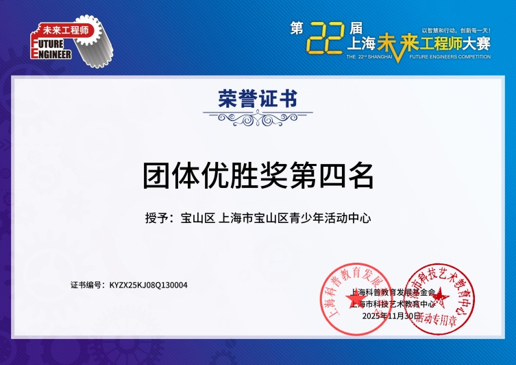 近日,2025年第22届上海未来工程师大赛圆满落幕。宝山区代表队共荣获一等奖4项、二等奖11项、三等奖26项,并夺得“团体优胜奖(第四名)”,充分展现了我区青少年扎实的工程素养与突出的创新潜力。