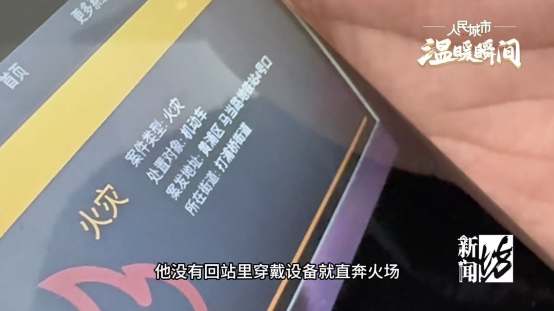 当天收到了火警弹窗时,他并不在上班。但一看起火点正在附近,他没有回站里穿戴装备,就直奔火场。