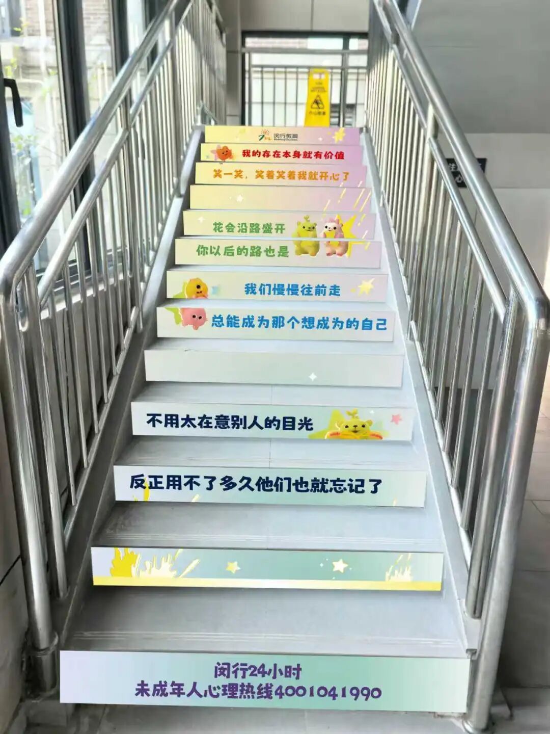 校园环创:楼梯地贴+暖心标语,营造阳光心理氛围