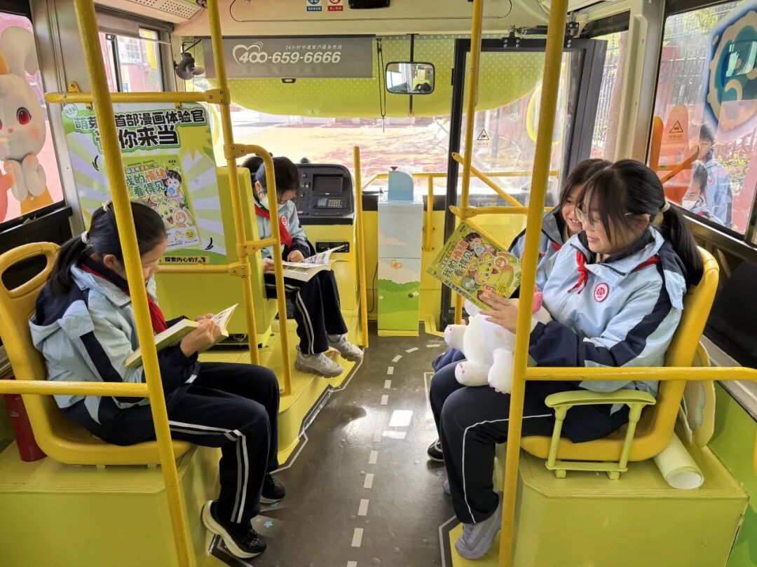 作为本次活动的核心载体,萌芽熊心理科普巴士内置八大交互屏、心理图书角、LED动画屏及车载走字屏,打造了一个移动的“心理科普空间”。巴士通过互动游戏、漫画阅读、动画展播等形式,帮助学生直观理解情绪变化,学习情绪应对技巧。