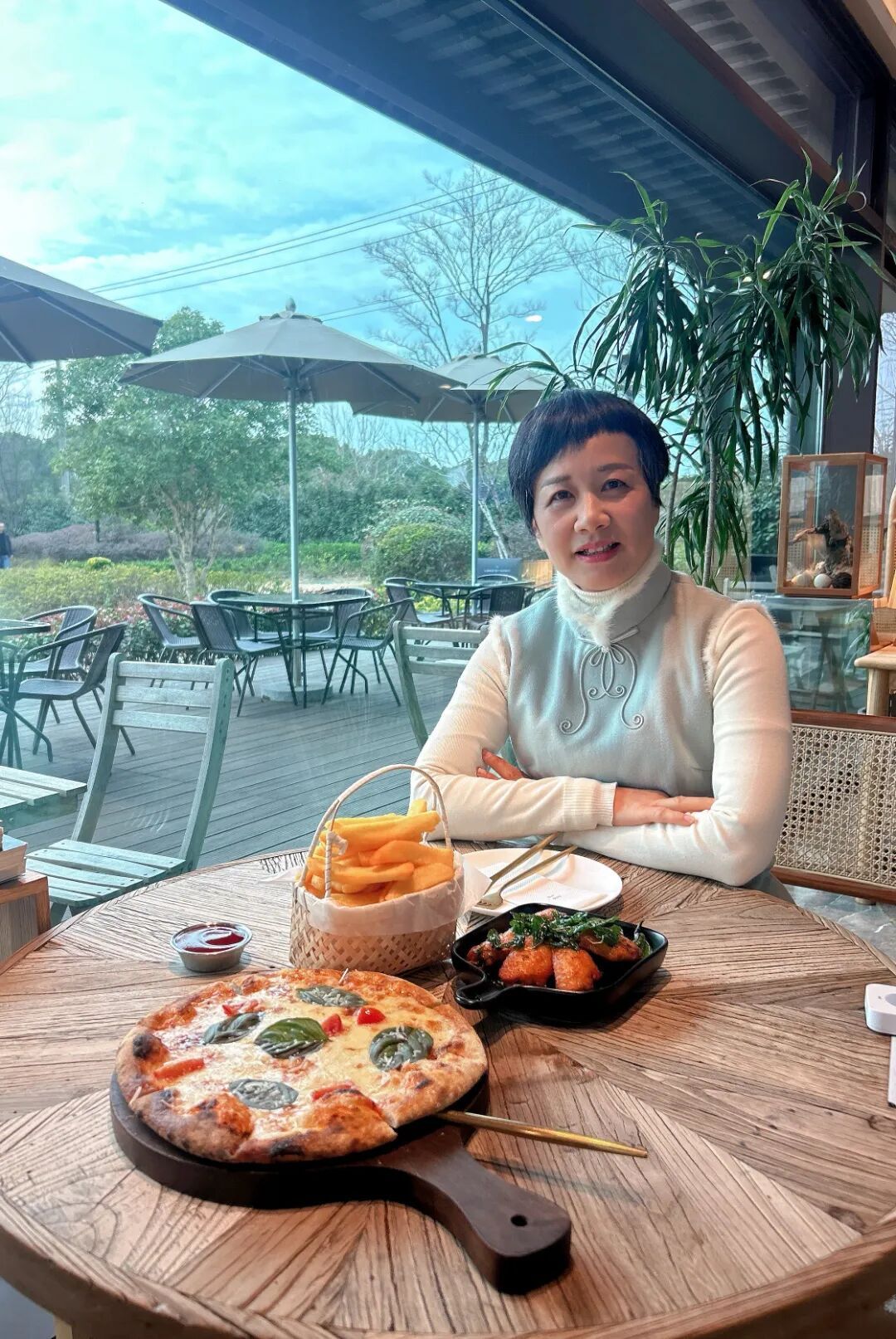 第一站,沈阿姨打卡了位于华亭镇的一尺花园。这是一处由老房子改造而成的西餐店,古朴的木结构与现代玻璃窗巧妙融合。镜头扫过精致的餐点,窗外是一望无际的田园风光。