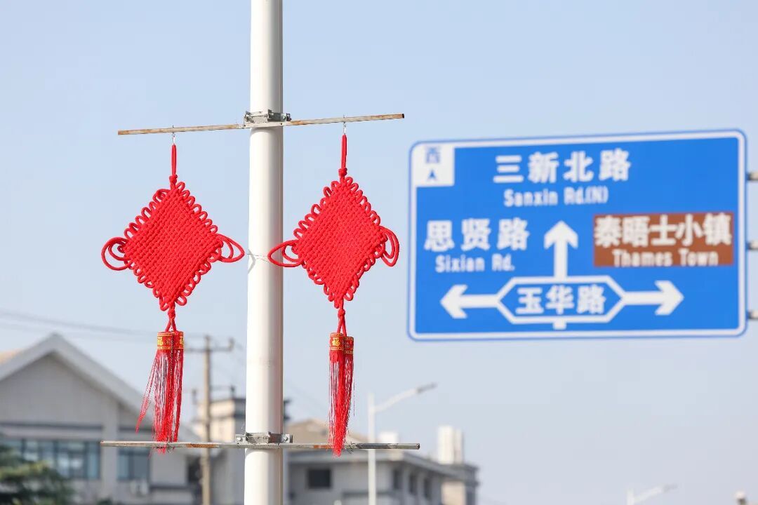 据方松街道相关负责人介绍,目前街道已在泰晤士小镇,以及三新北路、北翠路、江学路、滨湖路桥面等区域,统一布置中国结、红灯笼500余组。一抹抹中国红铺展在街头巷尾,串联起街道与社区,也唤起人们对新一年的期待。