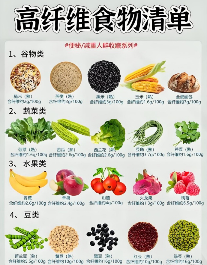建议选择食用富含膳食纤维和低血糖生成指数的碳水化合物,每日饮食应包含35~45g膳食纤维(其中7~13g为水溶性膳食纤维)。碳水化合物摄入以全谷物为主。
