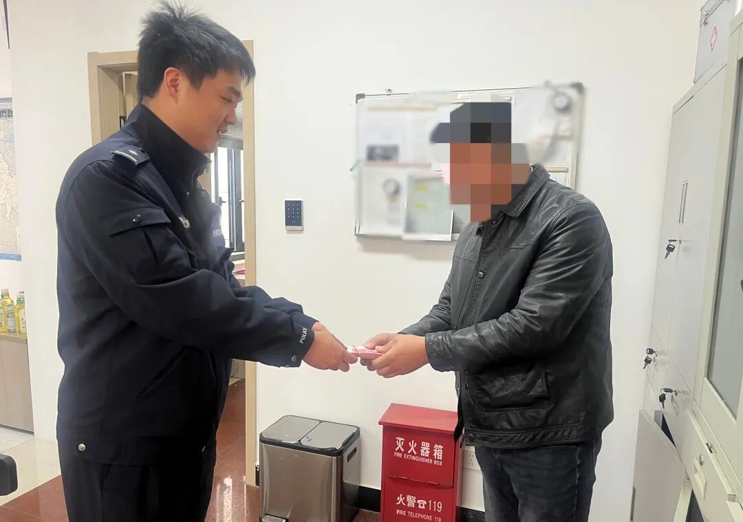 民警对该市民拾金不昧的善举