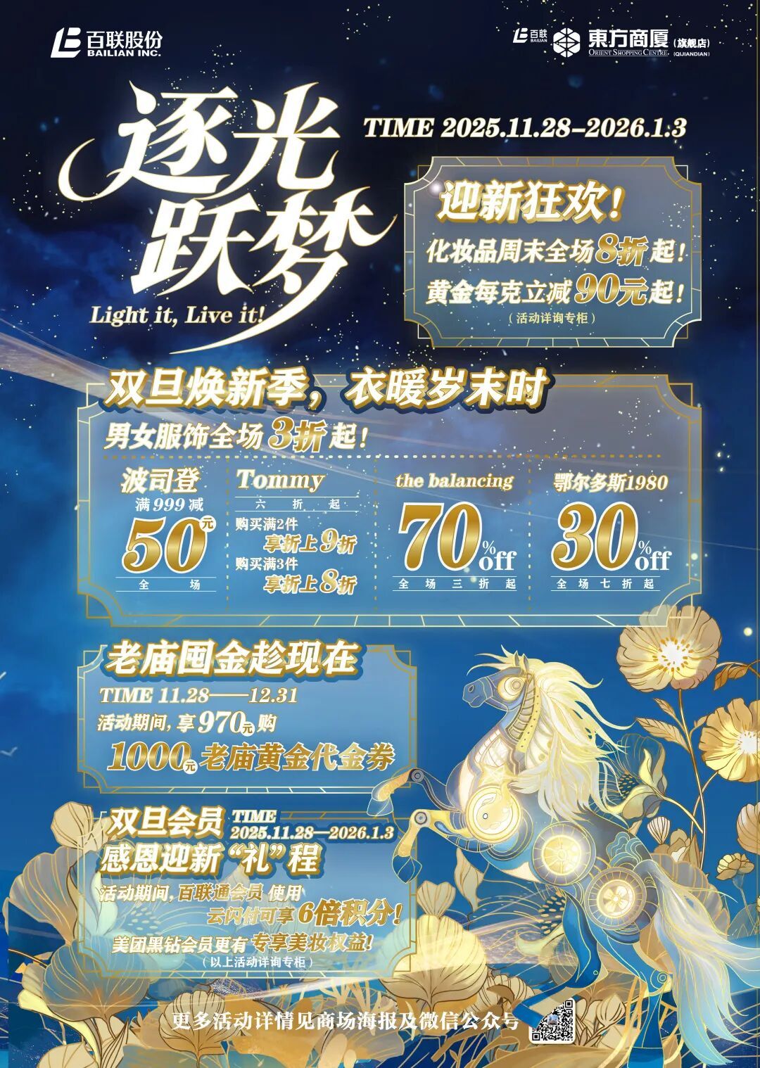 一站式乐享多元消费。汇联商厦34周年庆推出“2025汇食34载·味爱常相联”活动,飞洲国际“岁末”狂享季推出积分团购,百脑汇AI打卡消费礼放送,东方商厦“逐光跃梦”多重折扣焕新颜,TPY中心以“疯狂贴贴”为主题推出整合营销活动,新春惊喜一站集齐!