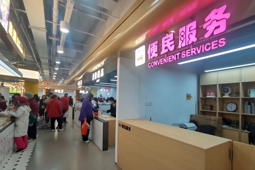 武定菜市场还和街道公益联盟合作,把便民服务点搬进菜市场,方便社区居民在家门口就能解决家电维修的“烦心事”。原先位于市场外部的餐饮、洗衣等小店也在此次升级改造中一并进行整合,为周边居民提供“一站式”社区生活服务。