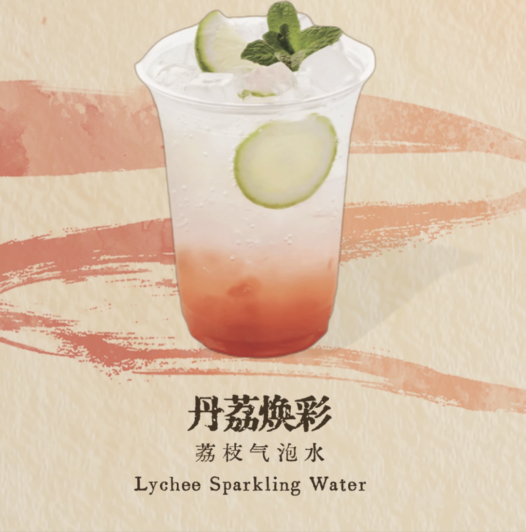 带点朱砂红色调,荔枝果酱的清甜在气泡水里慢慢散开。这款灵感源自王孟奇的《大荔丰年图》的荔枝气泡水甜润又清爽,一口就把岭南初夏的荔枝香带到新年里!