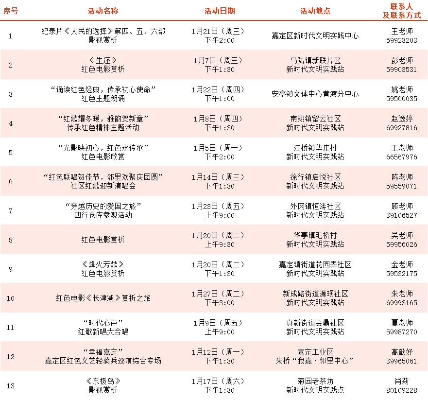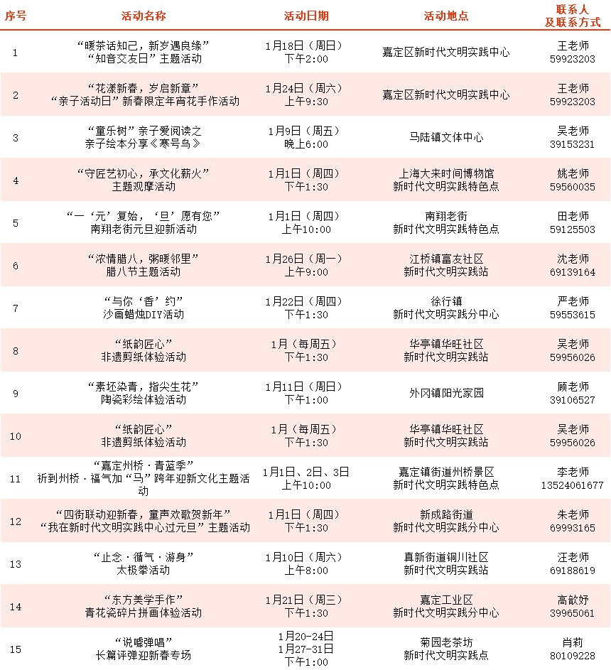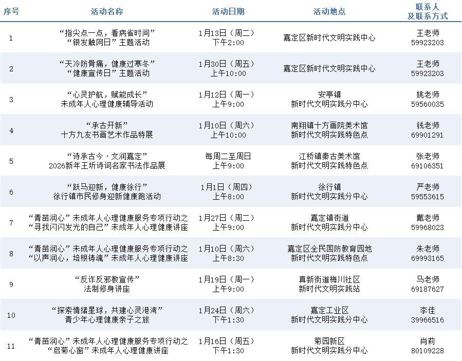 嘉定区新时代文明实践中心发布2026年1月嘉定区新时代文明实践活动精选菜单,市民朋友可以通过“上海嘉定”APP“新时代文明实践中心”频道点单参与。