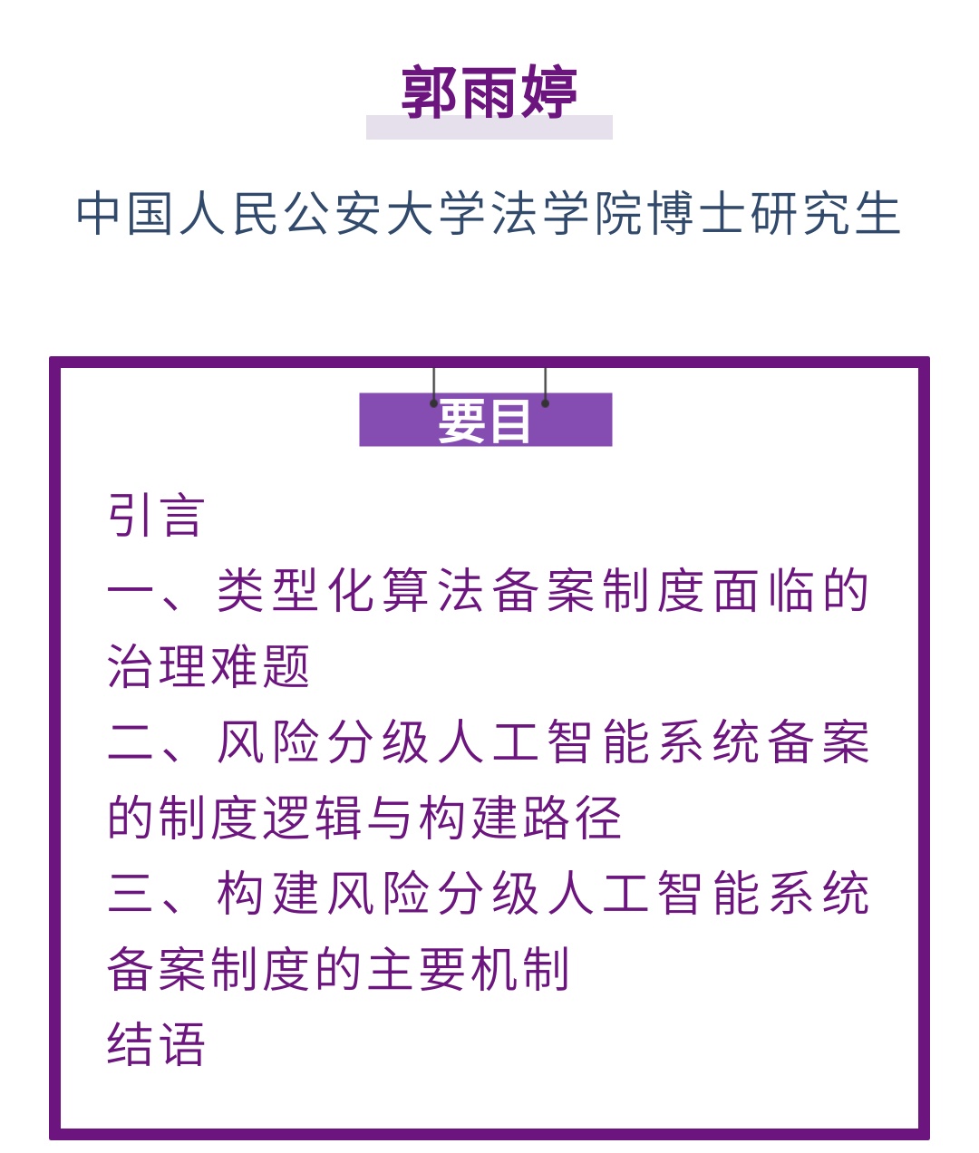备案义务不能局限于监管的单一视角,除健全审核与责任机制保障备案系统的高质、高效运行外,促进技术创新、减轻企业压力的发展视角不容忽视。目前我国备案制度为双备案模式。上文已分析了深度合成服务与生成式人工智能服务,生成式基础模型和下游衍生模型导致的重复备案问题。其根源主要为已备案信息不能继承,以及备案义务主体的单一与范围的广泛。备案继承的重要性日益凸显,并在实践中得到了初步响应。2025年1月,《国家互联网信息办公室关于发布2024年生成式人工智能服务已备案信息的公告》明确区分了备案与登记义务的主体,对通过API接口或其他方式直接调用已备案模型能力的生成式人工智能应用或功能只需在地方网信办完成登记即可。该规定考量并回应了人工智能大模型产业链的发展,体现了避免重复备案,备案义务履行可以继承的治理思路。一方面,算法与大模型、深度合成与生成式人工智能之间联系紧密,应用统一与联系的眼光去看待两者的备案义务。基于避免重复备案以及目前生成合成类算法单独备案的形式安排,可以考虑统一生成式人工智能服务模型的属地备案与算法备案系统中的生成合成类算法备案,具体来讲,在保留生成式类型的独立性的前提下,同时对模型与算法两方面内容进行备案,登记程序不变。另一方面,基于高效备案,鼓励技术创新的考量,算法层面的备案义务优化应秉承源头治理,使备案义务的履行得以继承,避免重复备案。具体来讲,在该算法的开发者或使用者已经备案的前提下,后续使用者如并未优化与改进该算法,即可免除备案义务,借鉴模型直接调用的处理办法履行登记义务即可;如有升级与优化,则可针对已备案部分进行登记,仅对优化部分进行备案。从长远发展角度看,推动备案义务主体的精细化划分,可更全面地解决备案重复问题,并为备案继承机制的高效运转奠定基础。目前算法备案义务主体为算法推荐服务提供者与深度合成服务提供者。换言之,只要向用户(或客户)提供了算法推荐服务或者深度合成服务,满足“具有舆论属性或者社会动员能力”,就必须在系统上进行备案。但实践中,人工智能系统参与主体多样,且往往承担多重角色。例如,欧盟《人工智能法》在“运营商”(operator)的统括下详细区分了提供者(provider)、部署者(deployer)、授权代表(authorised representative)、进口商(importer)、经销商(distributor)等主体,将备案义务主体限于提供者或授权代表。与欧盟《人工智能法》“提供者”不同,我国“服务提供者”范围十分广泛,不仅涉及使用人工智能系统的主体,还涉及开发人工智能系统以及将开发的人工智能系统投入市场或以自己的名义或商标投入服务的主体。简言之,只要提供了特定的服务,就可纳入“服务提供者”,极易出现“人人需备案”、重复备案的现象。由此,未来还可以逐渐细化备案义务主体,实现精准备案,并在此基础上形成体系性的备案继承框架。如此,不仅可以鼓励算法市场交易与技术发展,还可以节省备案资源,实现发展与监管的有效平衡。算法备案是优化算法治理体系与国家治理体系的重点环节,对于促进人工智能健康发展、保障用户权益具有重要意义。本文通过对4020份算法备案文件进行实证分析,揭示了我国类型化算法备案制度的治理难题。人工智能系统的运行需要各个算法的相互配合,也离不开数据、算力、模型框架等一系列元素的支撑,技术治理不应再局限于算法的局部视角,受困于类型化的固有弊端中。因此,备案制度的底层逻辑应从算法转向人工智能,从类型化转向风险分级,并有序推进风险分级导向的人工智能系统备案制度的构建。备案制度可以先实现以人工智能系统为中心的场景化备案,未来再逐渐建立完善的人工智能系统风险分级体系,实现以人工智能系统为中心的风险分级备案。另外,风险分级的人工智能系统备案制度需要一套完善的运行机制以保障实施。首先,应完善备案填报指导机制,制定基本原理与运行机制备案框架,提升备案信息质量,在源头阶段保障用户知情权并为信息监管打好基础。其次,应形成算法备案与算法审计责任链条,一方面保障算法备案制度本身发挥好信息规制作用;另一方面衔接算法审计,通过实质审核填补算法备案的责任体系。最后,为有效激励技术创新发展,应坚持系统思维,用统一与联系的眼光看待算法与模型备案义务,贯彻、实行备案继承机制,解决重复备案问题。制度的完善并非一蹴而就,而是一个持续演进的动态过程,需要政策制定者、技术开发者、用户群体以及学术界等众多利益相关方积极参与和协作。我们需持续关注制度的实施效果,及时进行反思和评估,并不断积累经验,以确保算法备案制度能够与时俱进,有效应对各种新兴挑战。在此基础上,还应进一步关注算法备案制度与算法影响评估、算法审计、算法解释等之间的衔接与联动,发挥制度合力,使技术创新在安全、合规的轨道上运行。梅傲|数字贸易制度型开放的基石:数字信任体系之构建齐萌|人工智能强制责任保险的法律构造——以智能驾驶为例姚万勤|“知情同意”与侵犯公民个人信息罪的出罪机制