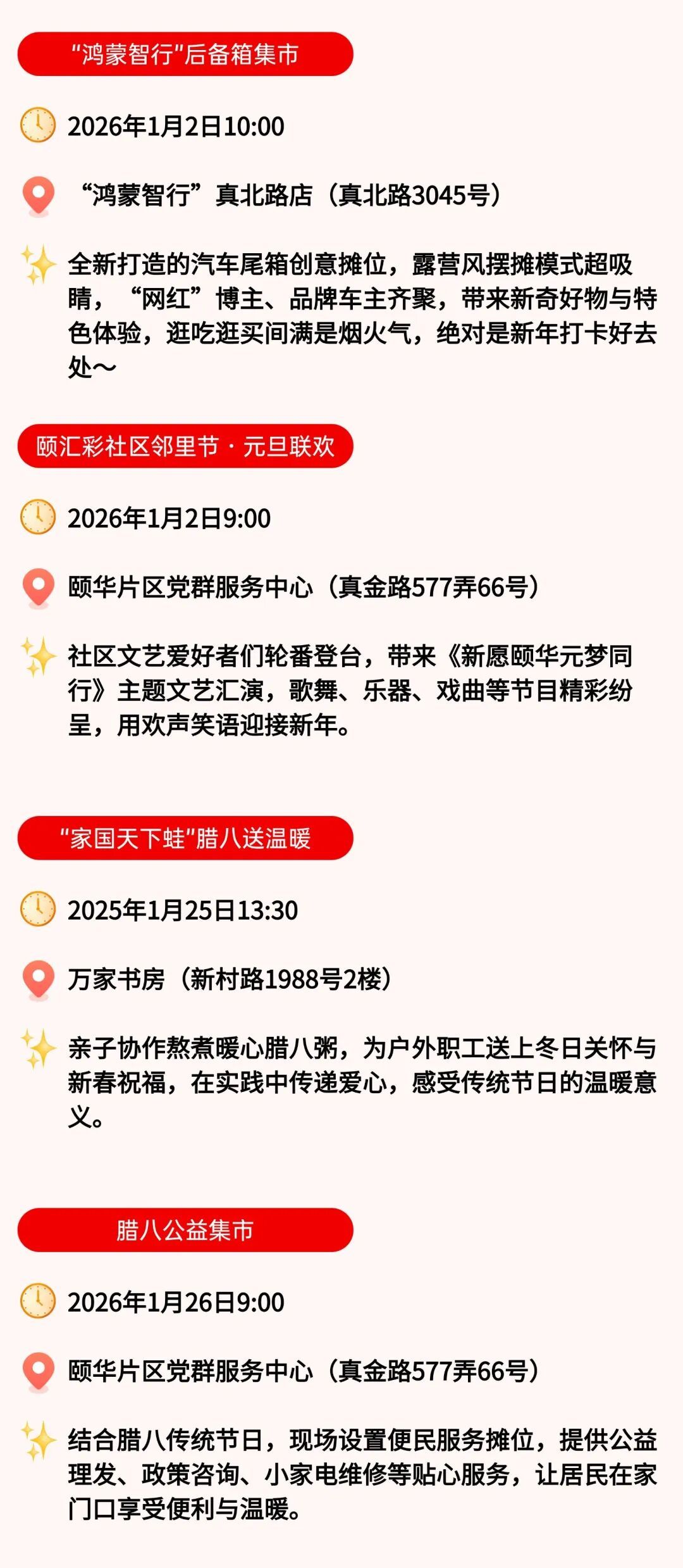 岁末将至,元旦启新!为让万里街道辖区居民沉浸式感受节日氛围与传统文化魅力,万里街道整合资源,策划了集市购物、手工体验、文艺演出、光影观赏等一系列精彩活动。这份覆盖整个万里辖区的打卡攻略,赶紧收藏好,带上家人朋友一起解锁暖心跨年之旅~