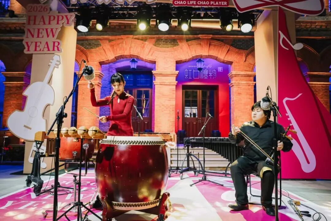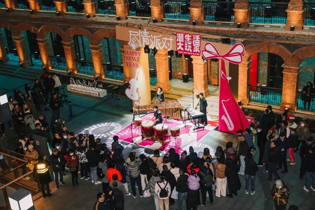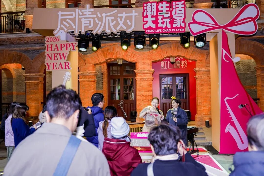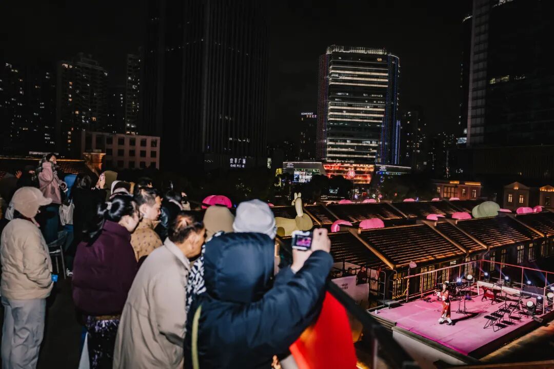 沉浸式跨年夜离不开滨港商业中心今潮8弄的“当家花旦”弄堂屋顶音乐会,市民们在“甜爱廊”欣赏粉色爱心海间的文艺演出,感受集传统与现代、东方与西方、经典与先锋于一体的迎新礼赞。