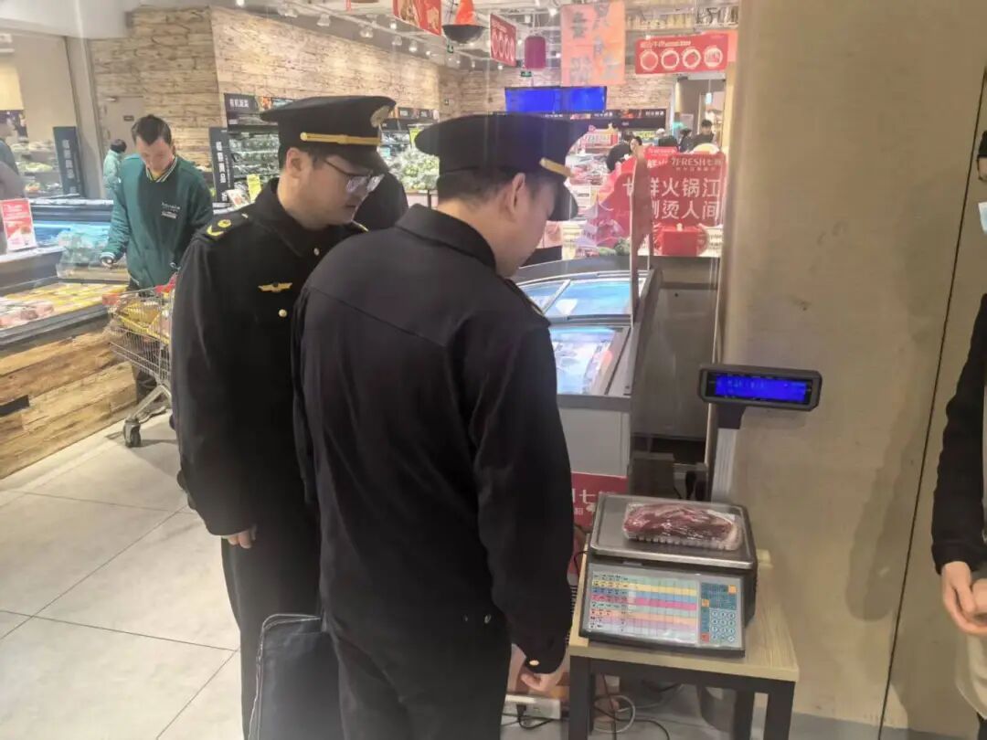 食品安全关乎人民群众身体健康和生命安全。监管人员重点核查生鲜区、冷藏冷冻区储存条件,要求严格执行冷藏0-4℃、冷冻≤-18℃标准。监管人员叮嘱商家,生鲜区实行分区经营,严禁使用“生鲜灯”。加工区域需每日清洁并留存消毒记录,销售环节按“先进先出”原则,临期食品设专区标识。 针对散装食品标签信息不全的问题,监管人员“手把手”教商户制作规范标签,把品名、生产日期等关键信息一项项捋清楚、讲明白,同时督促超市完善进货台账,指导工作人员严格落实进货查验和索证索票制度,将供应商资质证明、产品合格报告等材料一一归档留存,确保每一份散装食品都能追根溯源、有据可查。此外,监管人员还重点排查整治,坚决杜绝普通食品蹭“保健功效”热度的违规宣传行为,让食品标签“明明白白”,消费环境“安安心心”。 为筑牢化妆品消费安全防线,监管人员聚焦经营环节关键要点,为超市化妆品销售“划红线”:逐一对货架上的化妆品开展“标签体检”,明确要求所有最小销售单元必须附有规范中文标签,标签内容需与产品注册许可或备案信息一致,坚决杜绝医疗作用暗示及夸大宣传的违规表述,让标签信息真实可溯。 监管人员还指导超市搭建供应商“准入防火墙”,健全资质审核机制,从源头核验供应商营业执照、产品合格证明等材料,层层把关排查风险,坚决把“三无”化妆品挡在市场门外。针对抽检不合格的产品,要求商家第一时间下架,全方位守护消费者“面子安全”。 计量是市场交易的“公平标尺”,是守护消费公平的“第一道防线”。此次专项检查以“精准透明”为计量准则、以“公平诚信”为价格底线,全方位筑牢交易合规屏障。监管人员对辖区电子计价秤等计量器具开展排查,确保每一台电子计价秤经法定机构检定合格并张贴标识,严禁擅自改装行为。现场,监管人员同步讲解计量器具日常维护与定期送检要求,“经营的商品必须明码标价,价签信息要完整、更新要及时,促销活动需明确原价、促销价及活动期限,杜绝虚构原价等价格欺诈行为。”