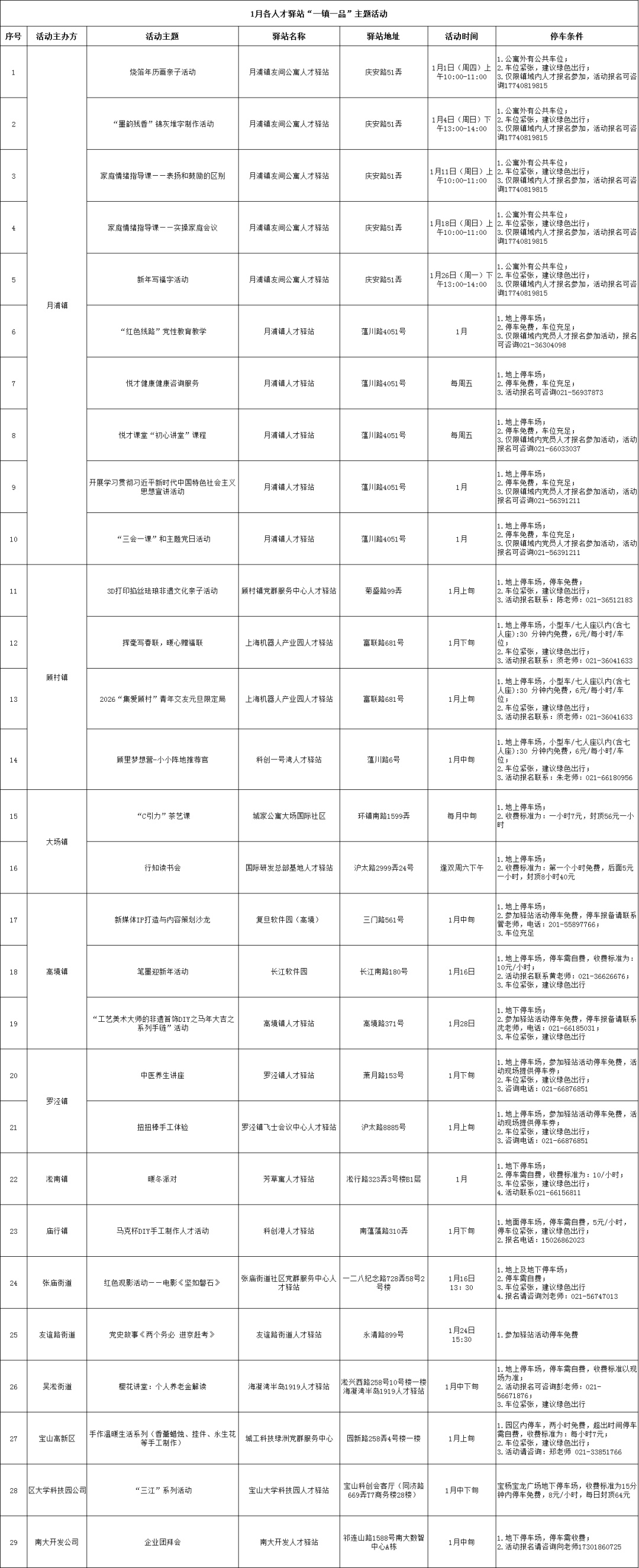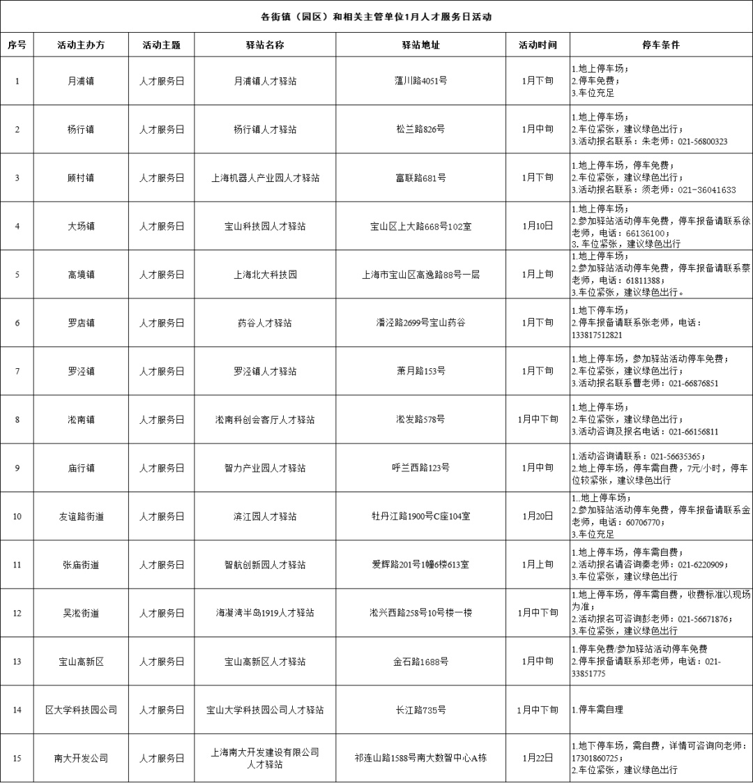 1月宝山区各人才驿站