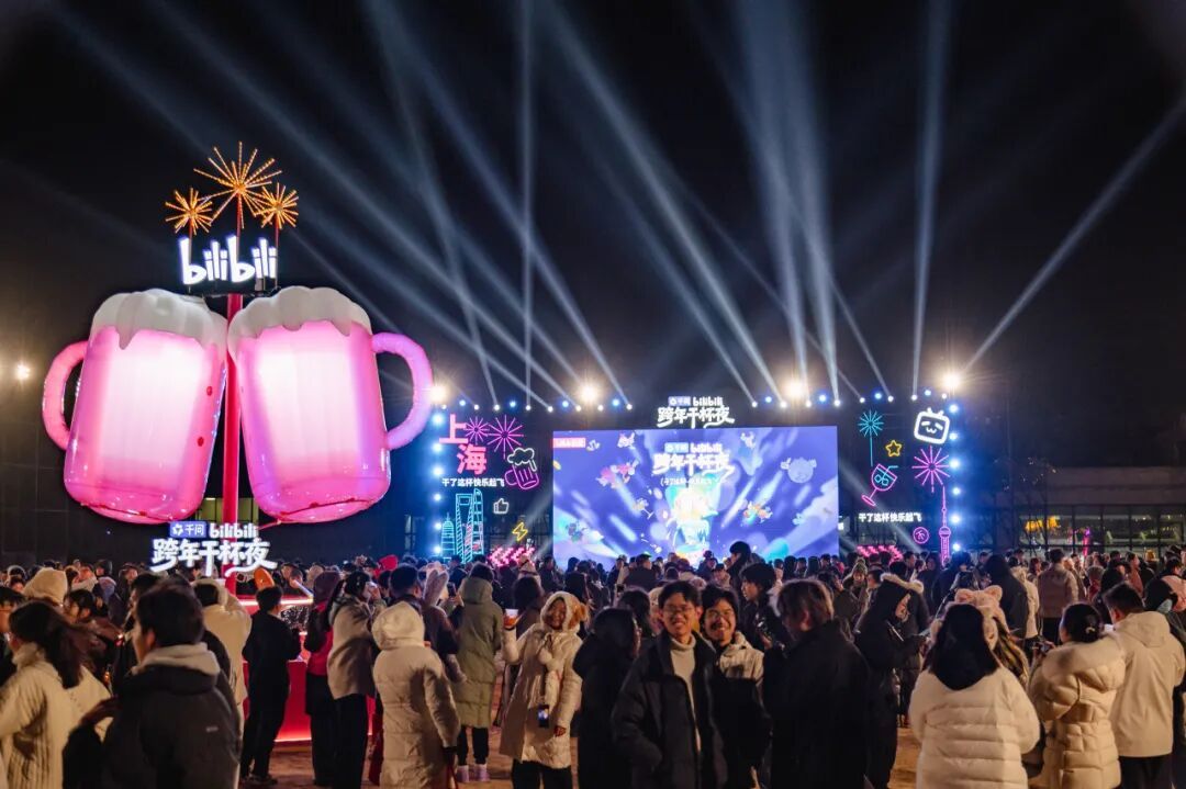 晚上6点,滨海的夜空,薄云轻笼,带着湿意的海风徐徐掠过沙滩,裹挟着冬日的凛冽寒意,但现场涌动的人潮与高涨的热情,瞬间驱散了这份冷意,处处洋溢着跨年的火热氛围。作为bilibili跨年干杯夜线下联动场地之一,这里成为了年轻人的欢乐聚集地。